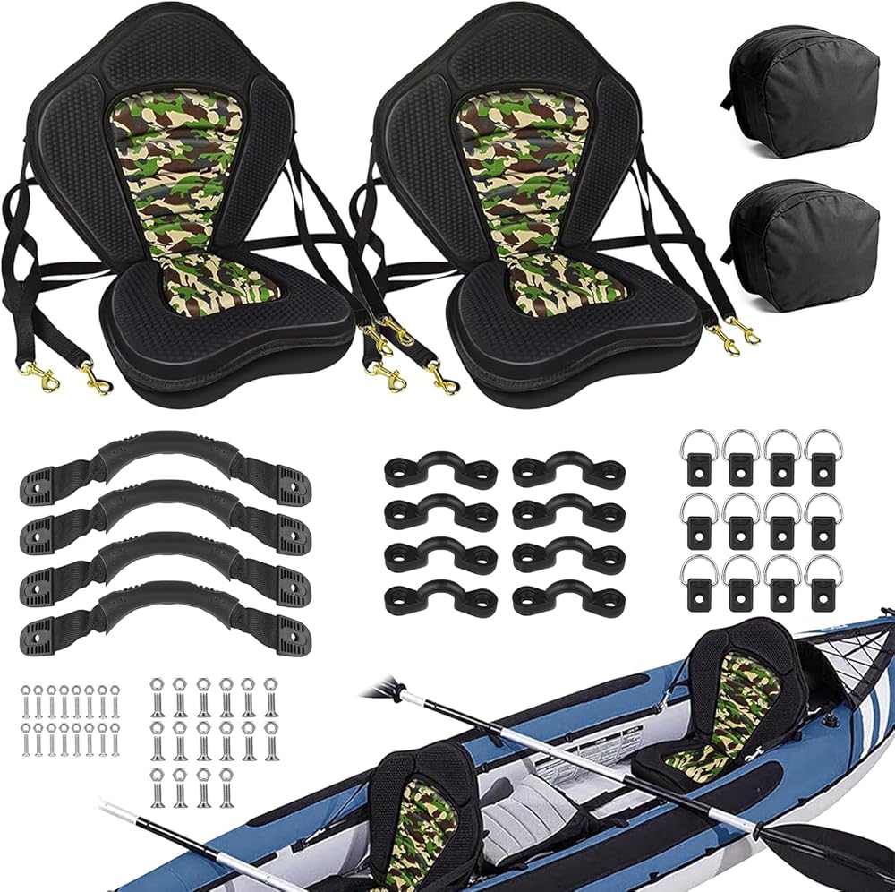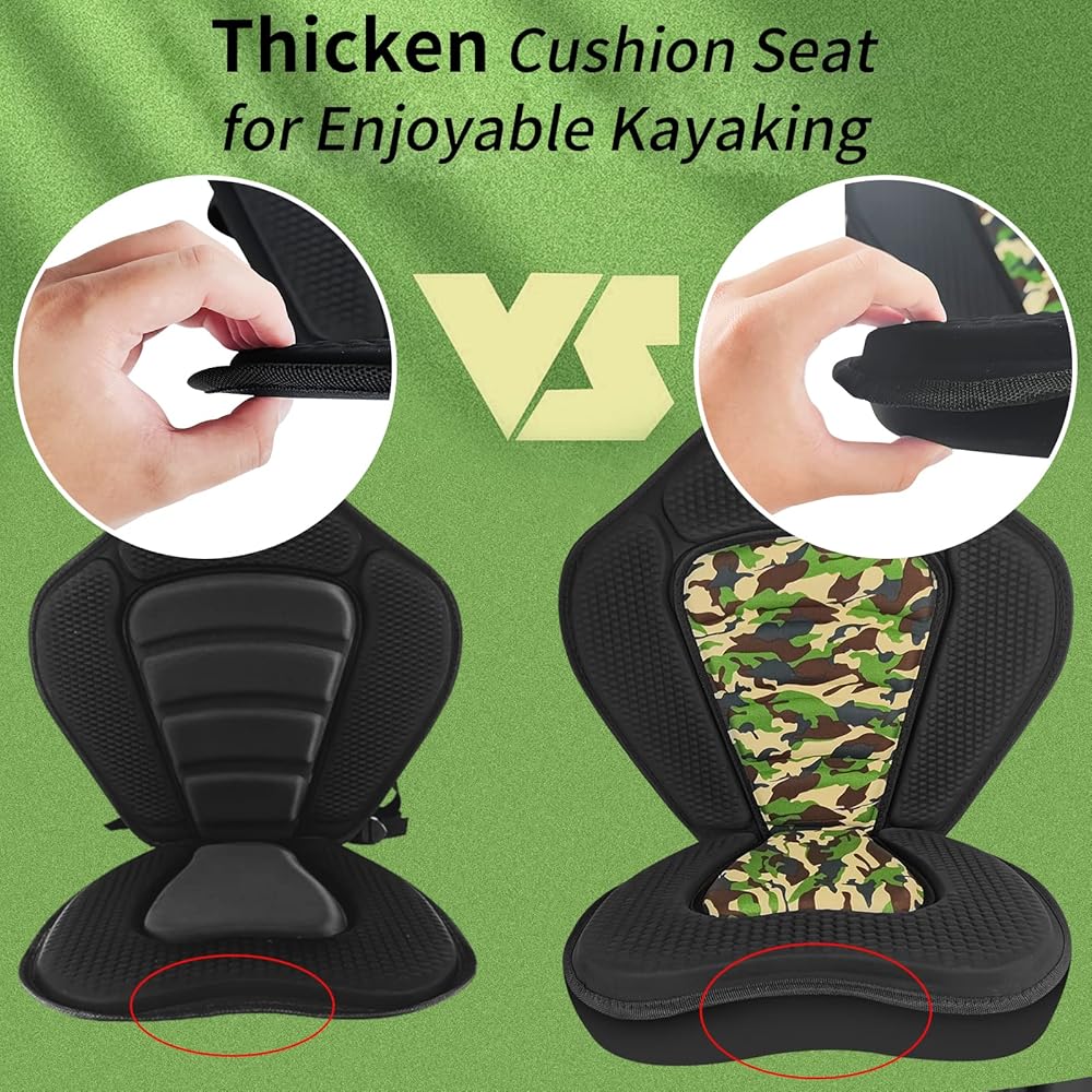 【قطعتان من مقاعد الكاياك المبطنة السميكة الفاخرة】مقاعد الكاياك الخاصة بنا مصنوعة من النيوبرين المتين المقاوم للأشعة فوق البنفسجية + بوليستر 600D، مملوءة بإسفنج EVA + لوح من البولي إيثيلين بالداخل، وسادات إسفنجية سميكة لا توفر فقط أداءً نهائيًا مقاومًا للصدمات ولكنها توفر أيضًا راحة تشبه الأريكة! مقعد لوح التجديف ليس مقاومًا للماء فحسب، بل يحتوي على سطح مقعد مبطن غير قابل للانزلاق لمزيد من الراحة والأمان أثناء تواجدك في البحر.