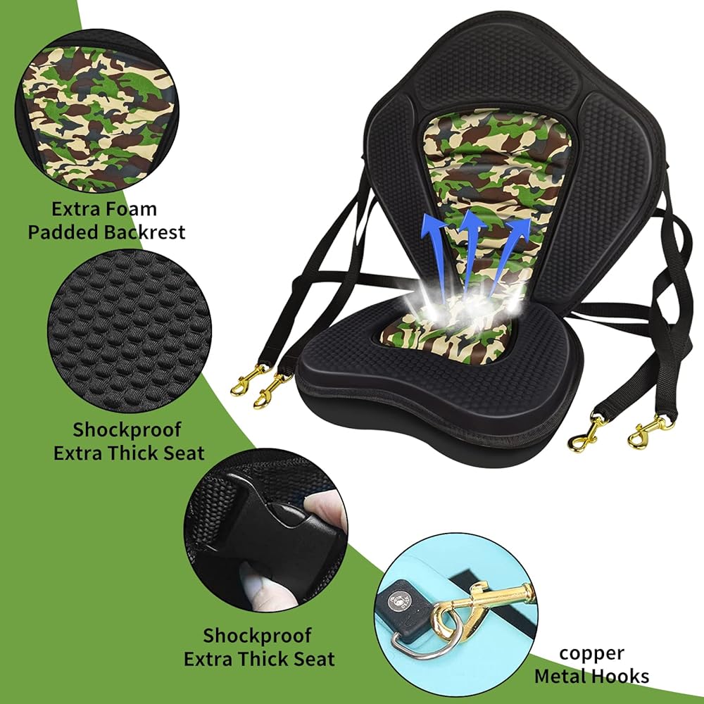 【مسند ظهر مريح وحقيبة تخزين بسحاب قابلة للفصل】مسند الظهر المريح مقاس 18 بوصة لمقعد الكاياك الفاخر يناسب جسمك تمامًا، مما يوفر أقصى قدر من الدعم للظهر المرتفع وراحة لا تصدق، ويشجع الشعور على قضاء يوم كامل من التجديف دون القلق بشأن آلام الظهر! يأتي كل مقعد لصيد قوارب الكاياك مزودًا بحقيبة تخزين بسحاب قابلة للفصل مجانًا ومغطاة بمادة طاردة للماء لسهولة تخزين ملحقات قوارب الكاياك أو أدوات الصيد الإضافية أو صندوق الغداء أو أغراضك الشخصية