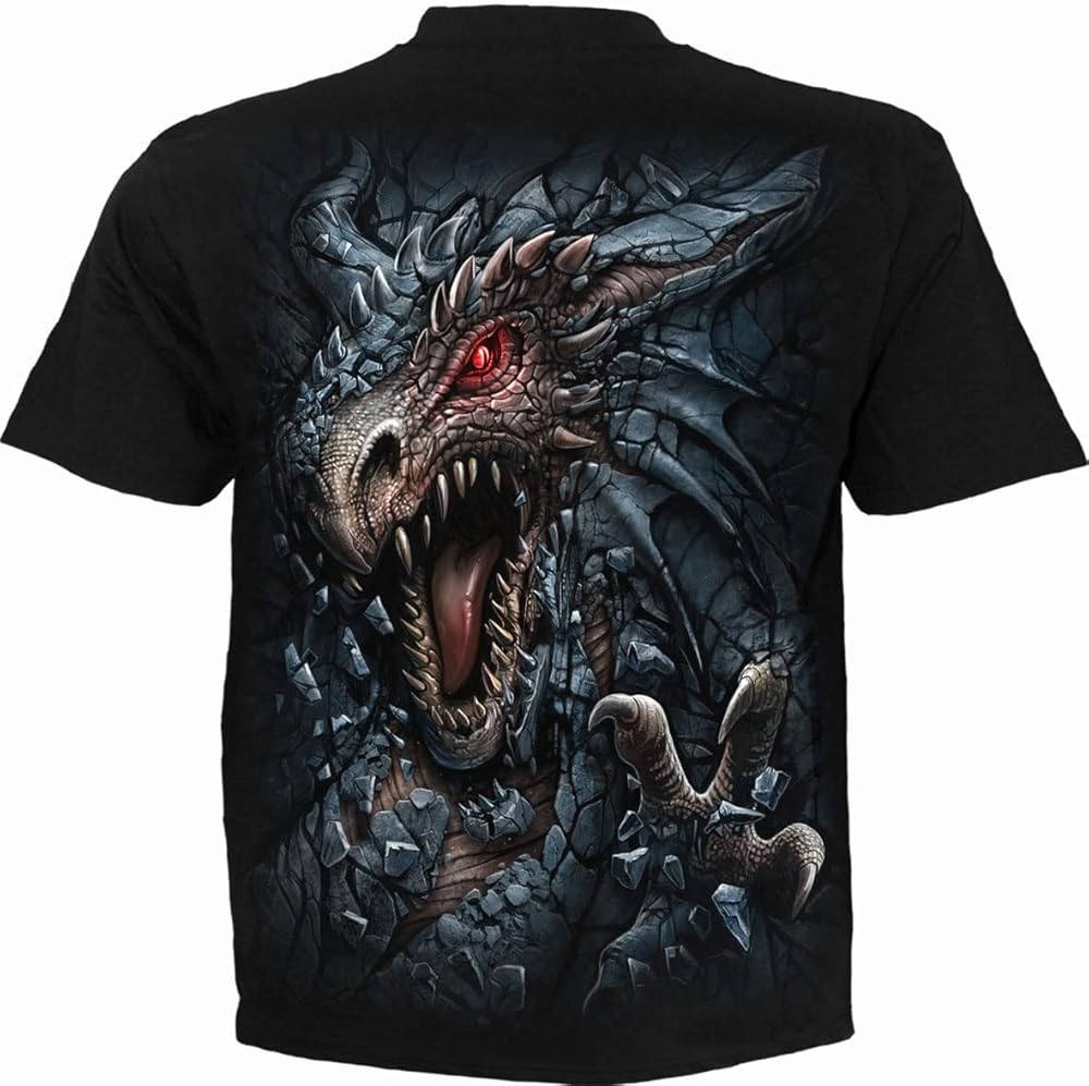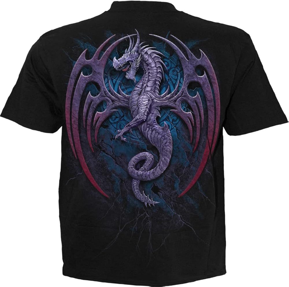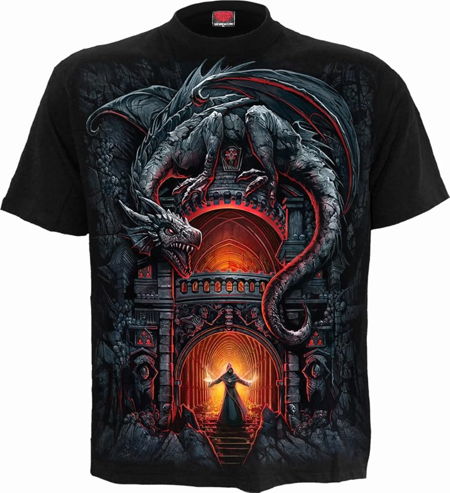 Wings of charred sulphur envelope the suffocating heat burning from within this dragon's belly. Molten lava seeps from every crack along her body, dripping to the ground where furious flames whip and lick at her feet.. T-Shirt Black is made of Top Quality 100% Cotton, Jersey using skin friendly, Azo-free, Reactive dyes.