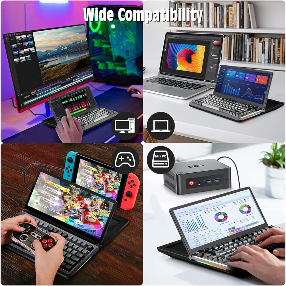 لوحة مفاتيح ميكانيكية للألعاب تعمل باللمس - K3 شاشة محمولة متعددة الوظائف مقاس 13 بوصة مع لوحة مفاتيح تعمل باللمس USB/SSD توسيع مدمج 82 مفتاحًا RGB LED بإضاءة خلفية FN-Key لنظام التشغيل Windows Mac Android