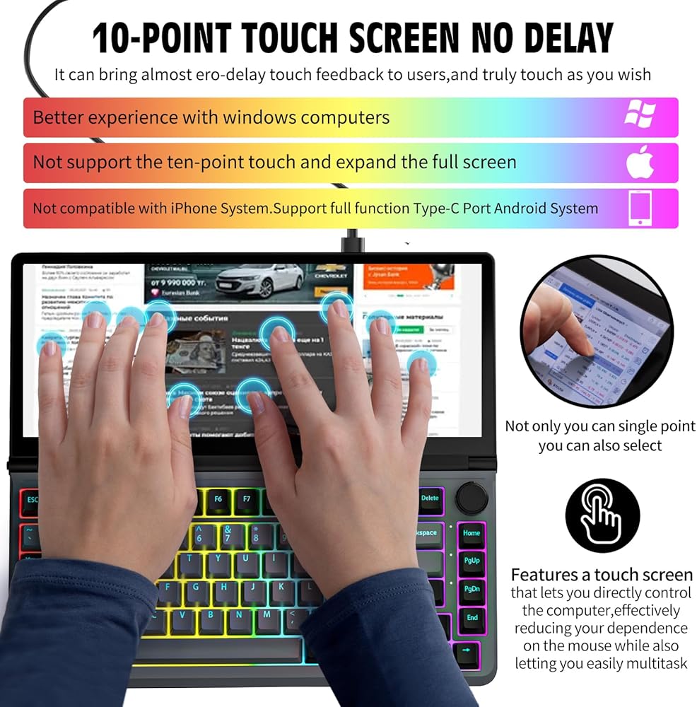 • شاشة لمس عالية الدقة مقاس 13 بوصة: شاشة لمس IPS مقاس 13 بوصة بدقة 1920 × 720 بكسل، مجموعة ألوان NTSC بنسبة 60% ولمسة 10 نقاط للمسة بدون زمن استجابة تقريبًا، لوحة مفاتيح تعمل باللمس مبتكرة لتغيير اللعبة مع شاشة يمكن تعديلها بحرية ستوفر لك زاوية العرض التي تتراوح من 0 إلى 90 درجة تجربة بصرية مريحة وغير عادية دون إمالة رأسك من اليسار إلى اليمين مع زيادة إنتاجيتك.