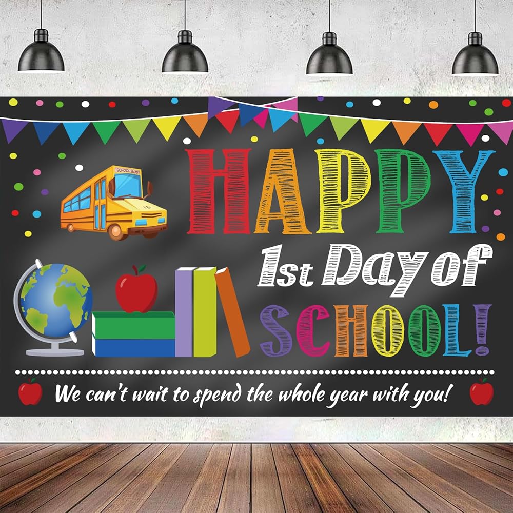 First Day of School Backdrop - Perfect for hunging on the wall, blackboard, shelves, dessert tables, the adornment of the integral collocation of color is also very perfect place. It will attract the students attention immediately, beautiful and special.
