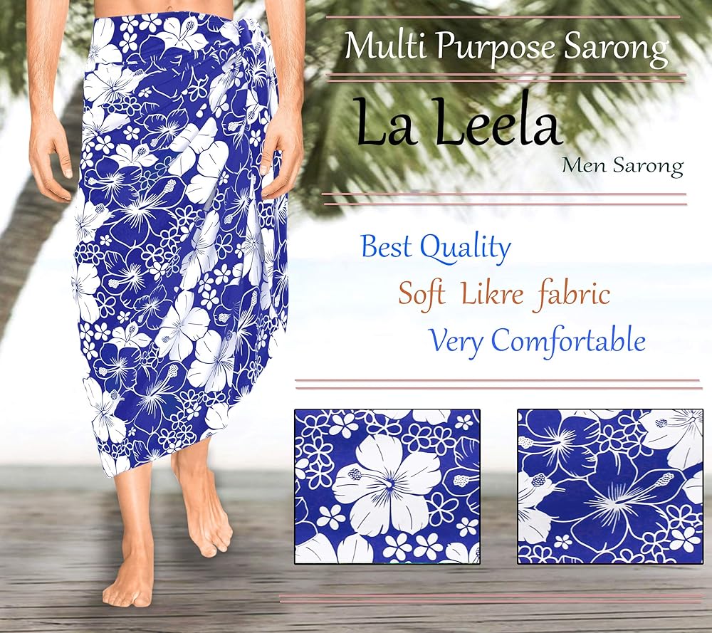 • Men's sarong cover up featuring coverage, wrap around whole body for any style, protect your skin from direct exposure of sunlight, cool open front or tie up design, vibrant colors, hawaiian tropical floral prints, secure this sarong in style keeping tie on and create head to toe effortlessly fashion influencer look, highly absorbent, yet lightweighted, double stitched edges on all edges for extended life, print detailing adds visual interest whether folded or hanging