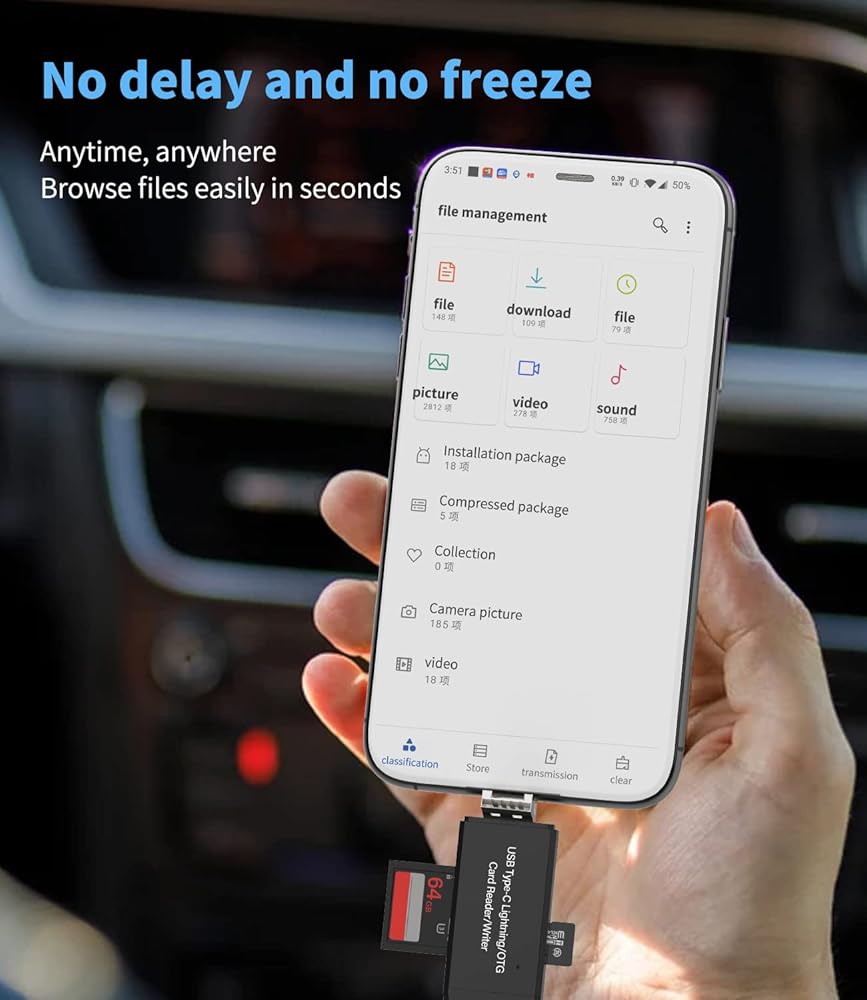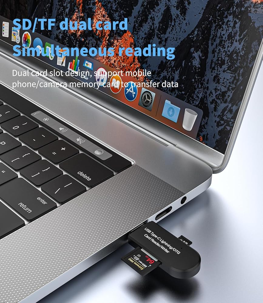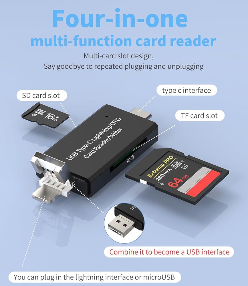 ✨5-in-1 Card Reader: After connecting the device, transfer photos, and videos from SD/MICROSD USB digital camera to phone. Plug and play, no other apps are required.