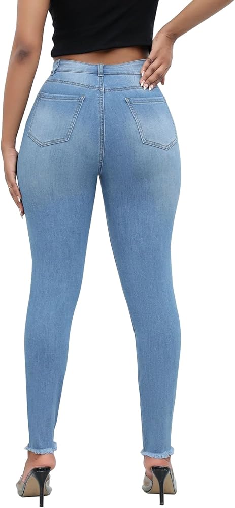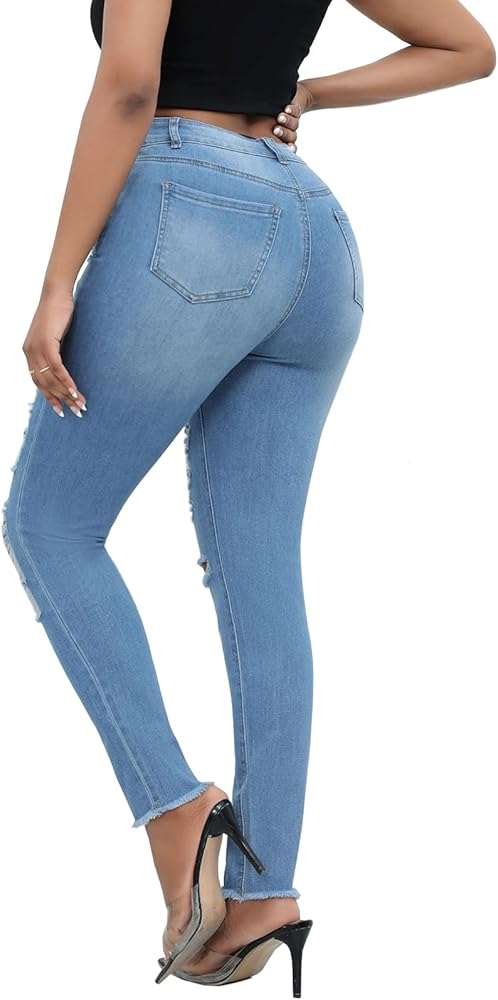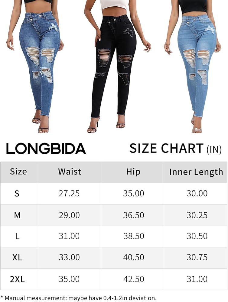 جينز قابل للتمدد: مقاس نحيف مرن، مصمم بلمسة نهائية ممزقة على الكاحل وأزرار متقاطعة تجعل خصرك يبدو أنحف.
