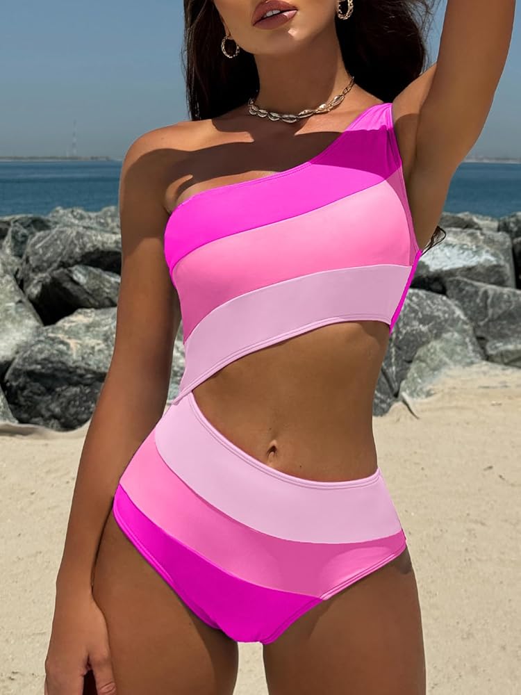 بدلة سباحة نسائية - ملابس سباحة قطعة واحدة بكتف واحد، خفيفة الوزن، مسامية، ومتينة. يمكن تنسيق ملابس السباحة لدينا مع بنطال أو تنورة للحصول على بلوزة غير رسمية لملابس الشارع.
