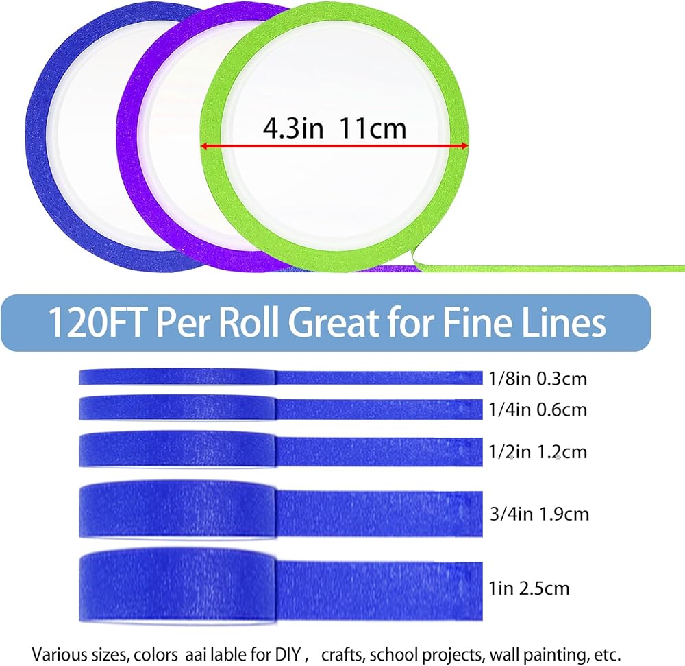 خيارات مخصصة: أطلق العنان للدقة والتنوع مع شريط الرسام الخاص بنا، الذي يوفر مقاسات 1/8، 1/4، 1/2، 3/4، عرض 1 بوصة لجميع احتياجات مشروعك. شريط لاصق ممتاز للحرف اليدوية مثالي للأنشطة والمشروعات اليدوية المدرسية.