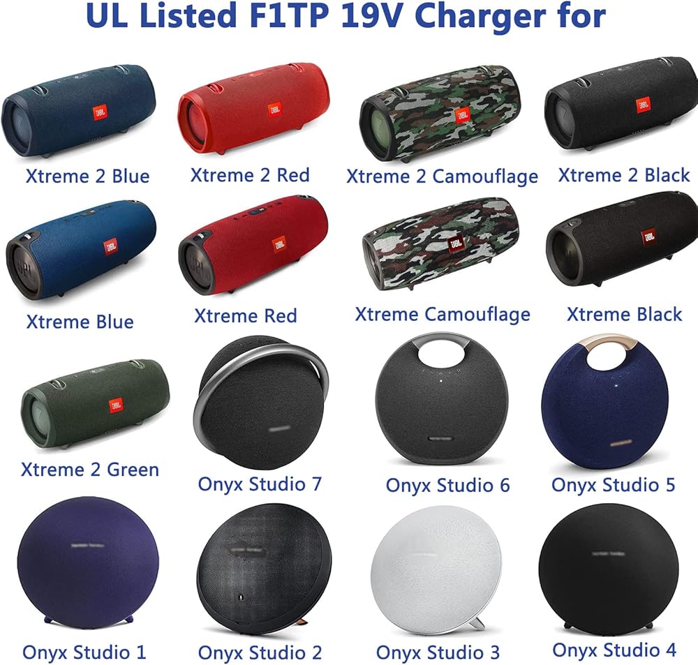 F1TP 19V شاحن AC / DC محول سلك الطاقة لـ JBL Xtreme Xtreme2 سماعات بلوتوث محمولة Harman Kardon Onyx Studio 1 2 3 4 5 6 7 سماعات بلوتوث لاسلكية