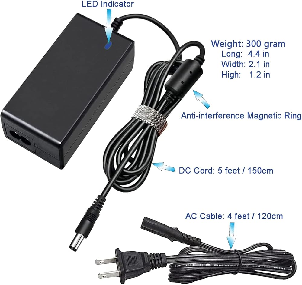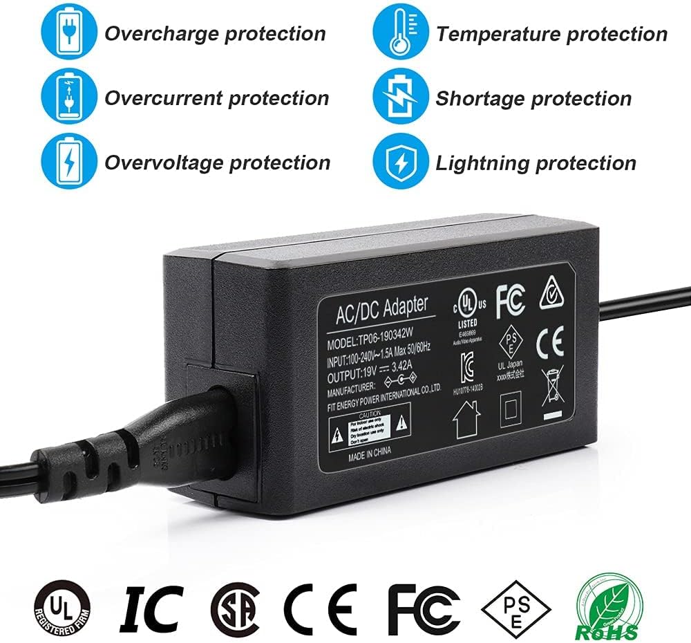 • ◆Specifications: Input 100V~240Vac 50/60Hz 1.5A Max, Output: DC 19V 1.5A~3.42A (Max Power 65W), AC/DC Adapter Cord 9ft, Anti-interference magnetic ring: No interference & noise, 9ft Long cord, Efficiency Level VI