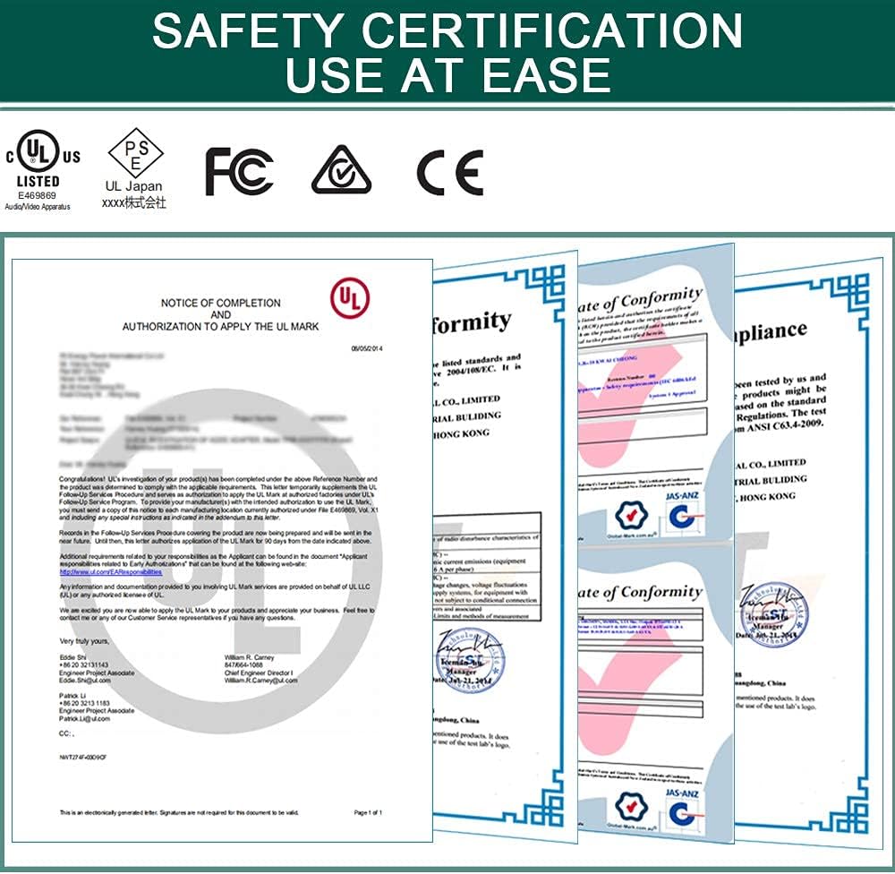 • ◆Safety & Certification: AC Adapter Class VI energy efficiency, Buit-in smart chip with Overcharge, Overcurrent, Overvoltage, Temperature, Shortage, Lightning protection. UL ETL FCC SAA PSE CE RoSH Approval and certification.