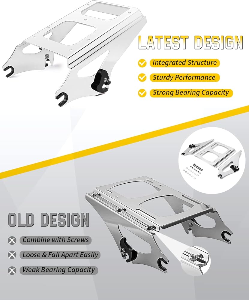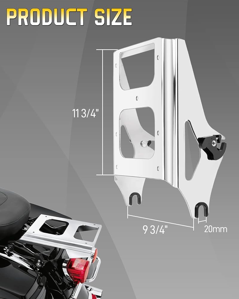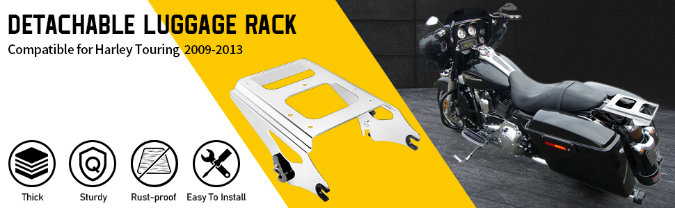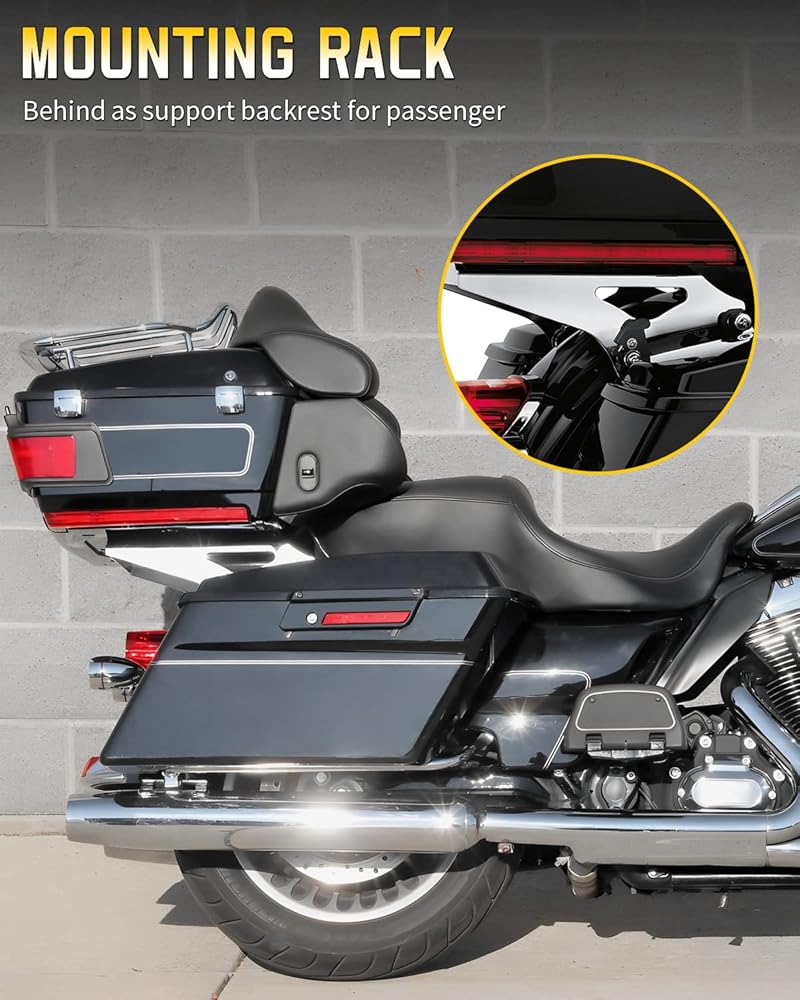 التوافق - رف أمتعة ما بعد البيع متوافق مع طراز Harley 2009-2013 للرحلات، احصل على رف التثبيت هذا من أجل قيادتك المريحة والمريحة. إنه متوافق مع جولات Harley، بما في ذلك Street Glide وElectra Glide وRoad King وRoad Glide، ويتطلب تجهيزًا بمجموعة أدوات إرساء ذات 4 نقاط.