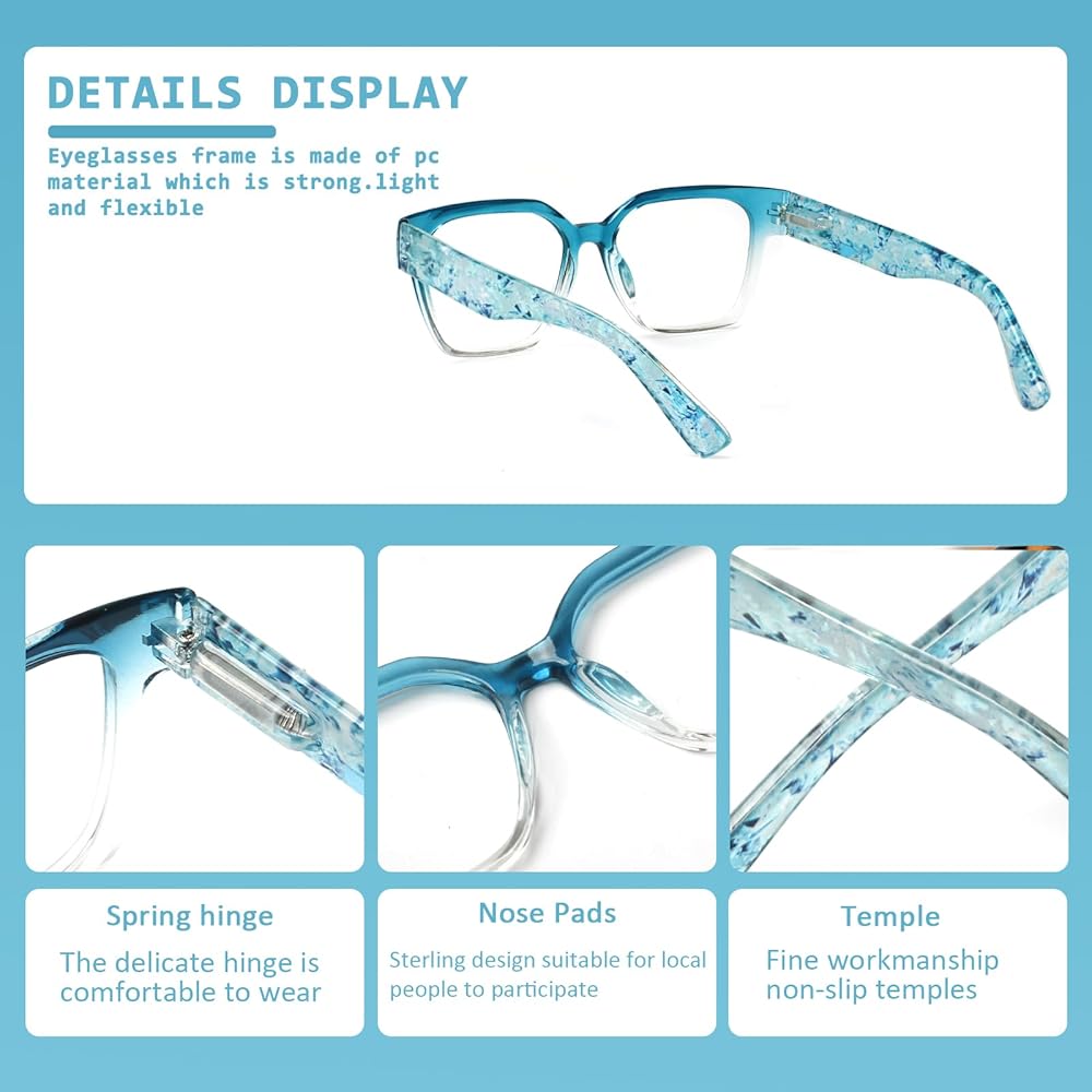 [تصميم مريح] - نظارات القراءة الخاصة بنا مصنوعة من البولي كربونات المتين، وإطارات من البولي كربونات خفيفة للغاية مقاومة للخدش، ووسادات أنف صديقة للبشرة، ومضادة للانزلاق ومريحة في الارتداء، وتناسب جميع أشكال الوجه.