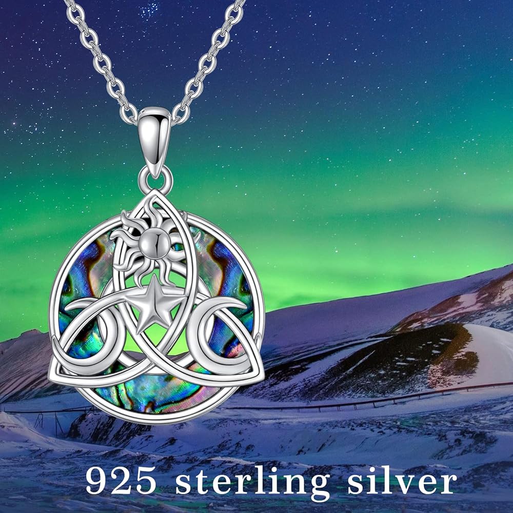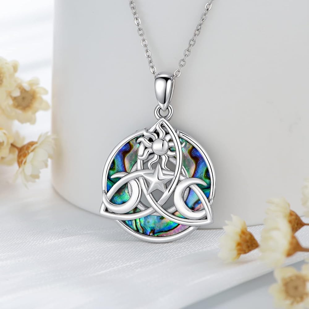 قلادة آلهة القمر الثلاثي 925 من الفضة الاسترليني قلادة الويكا الوثنية مع عقدة سلتيك الثالوث قلادة أذن البحر شل قلادة مجوهرات ساحرة هدية للنساء والرجال