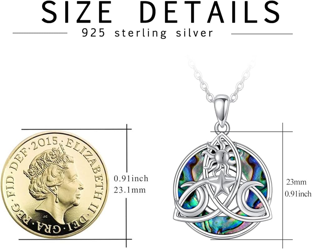 • 【 Premium Material 】 The Abalone Shell Pendant Necklace made of 925 Sterling Silver,Nickel-free and lead-free. Skin-friendly, suitable for long-term wear, Sturdy and durable, this triple goddess necklace can be worn by men and women.