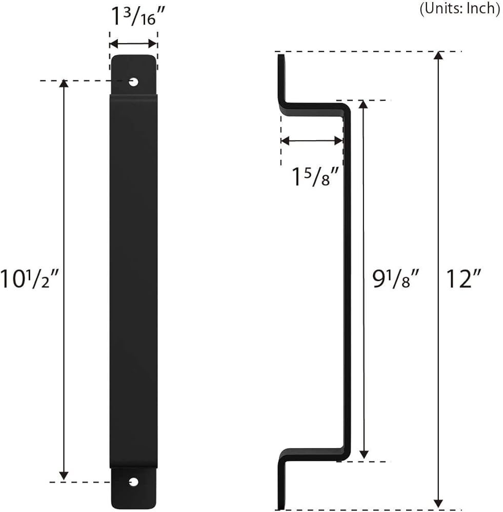 سُمك لوحة الباب: تناسب معظم المقاسات (إذا كنت تريد استخدامها للوحة باب أرق، يمكنك شراء بعض البراغي الأقصر لتتناسب مع الباب.) أبعاد مقبض السحب: 12 بوصة (طول) * 1-3/16 بوصة (عرض)، المقبض فقط: 9-1/8 بوصة.