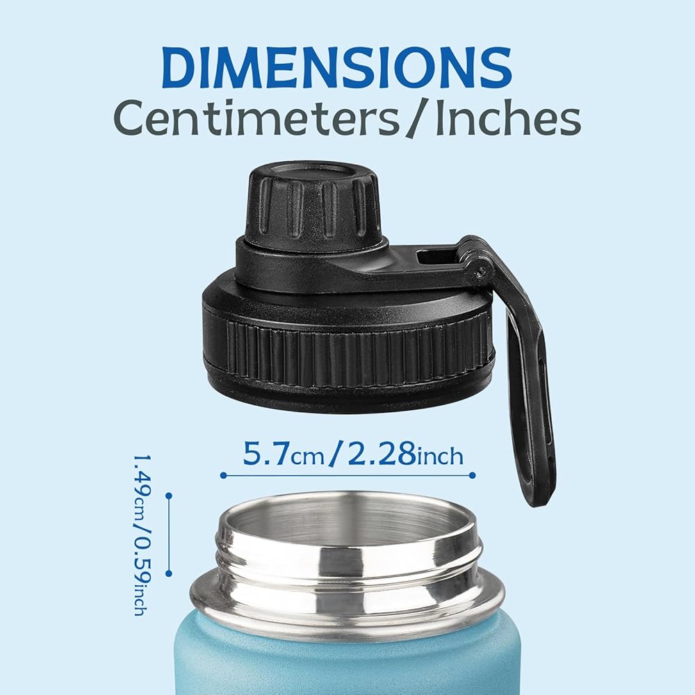 تصميم الزجاجات ذات الفم الواسع: أغطيةنا عبارة عن زجاجات من الفولاذ المقاوم للصدأ بقطر 2.28 سم. مثالية لزجاجات المياه ذات الفم العريض من ستار سبيد 14،32،40،64 و128 أونصة، متوافقة مع معظم زجاجات الفم العريضة.