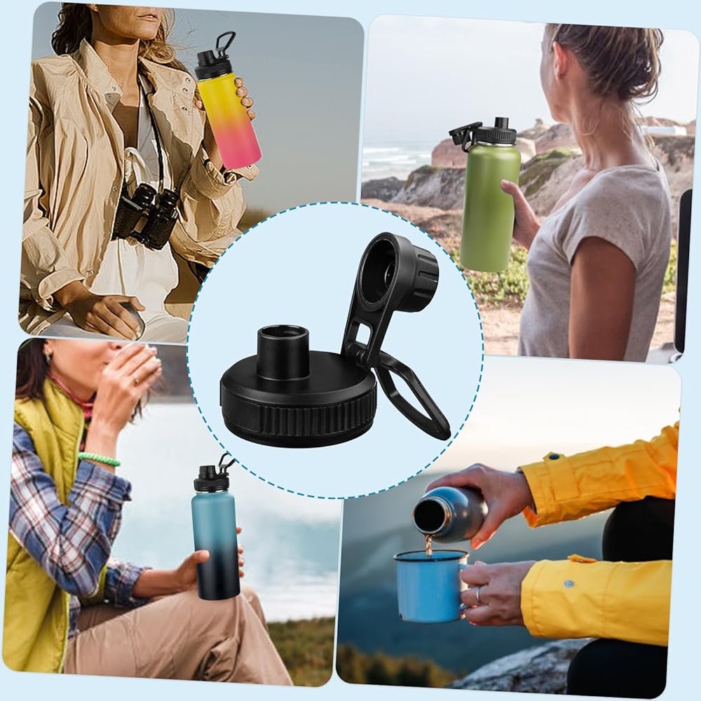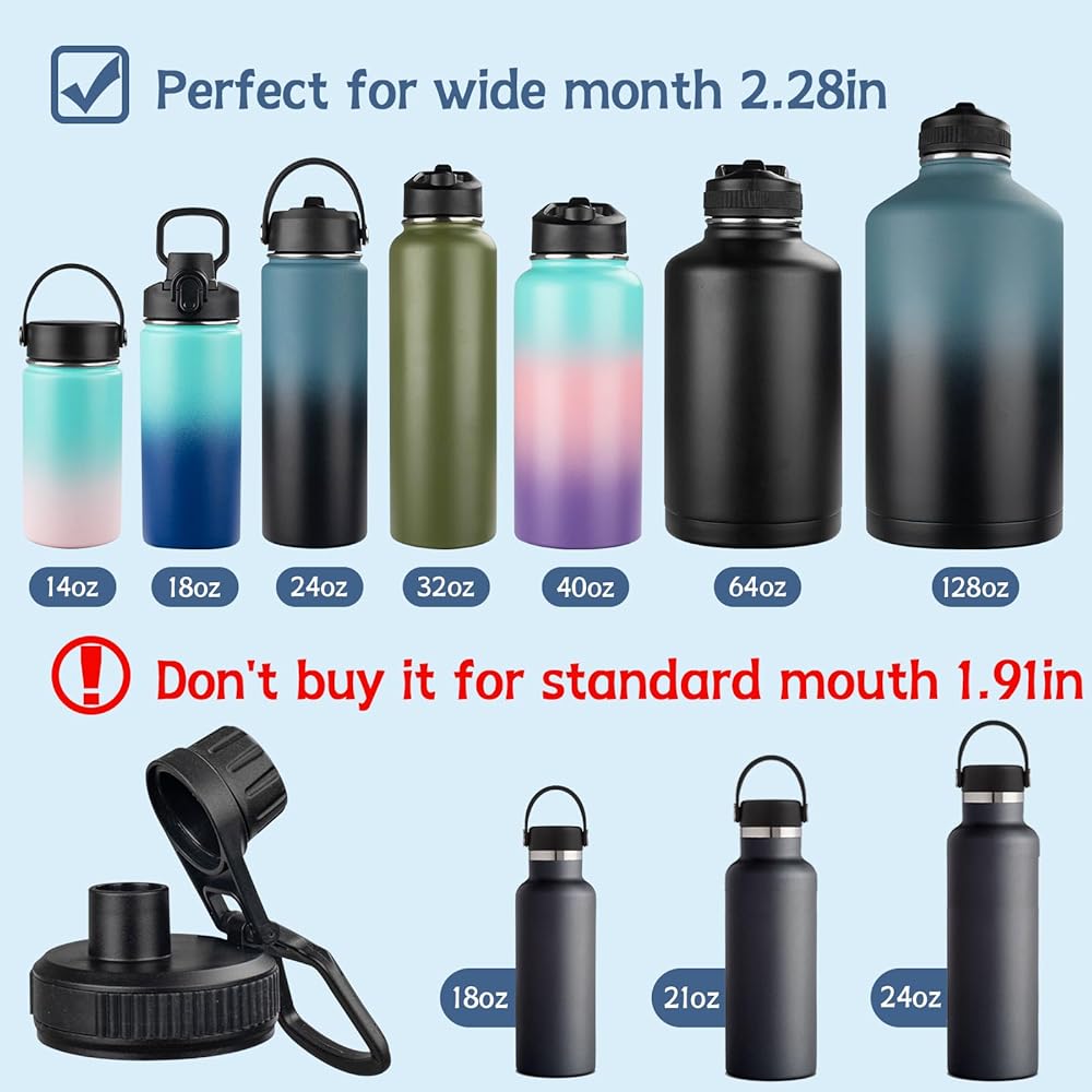 عبوتان من غطاء فوهة الشرب لفم واسع 14، 32، 40، 64 أونصة من زجاجات المياه، ملحقات غطاء بديلة لزجاجات المياه الرياضية ذات الفم العريض مقاس 2.28 سم مع مقبض سهل الحمل