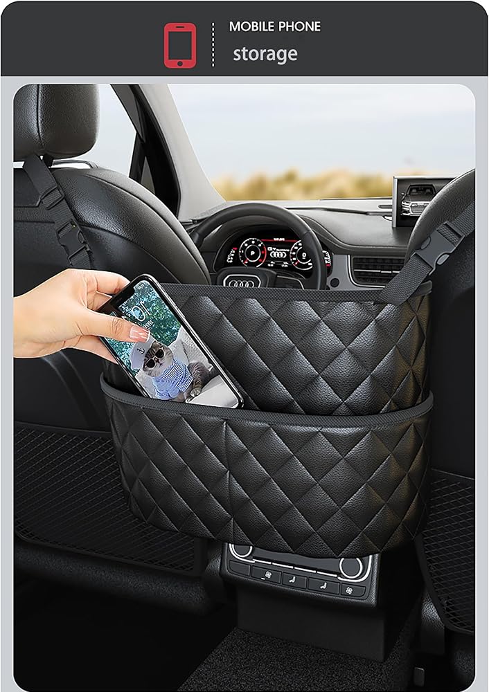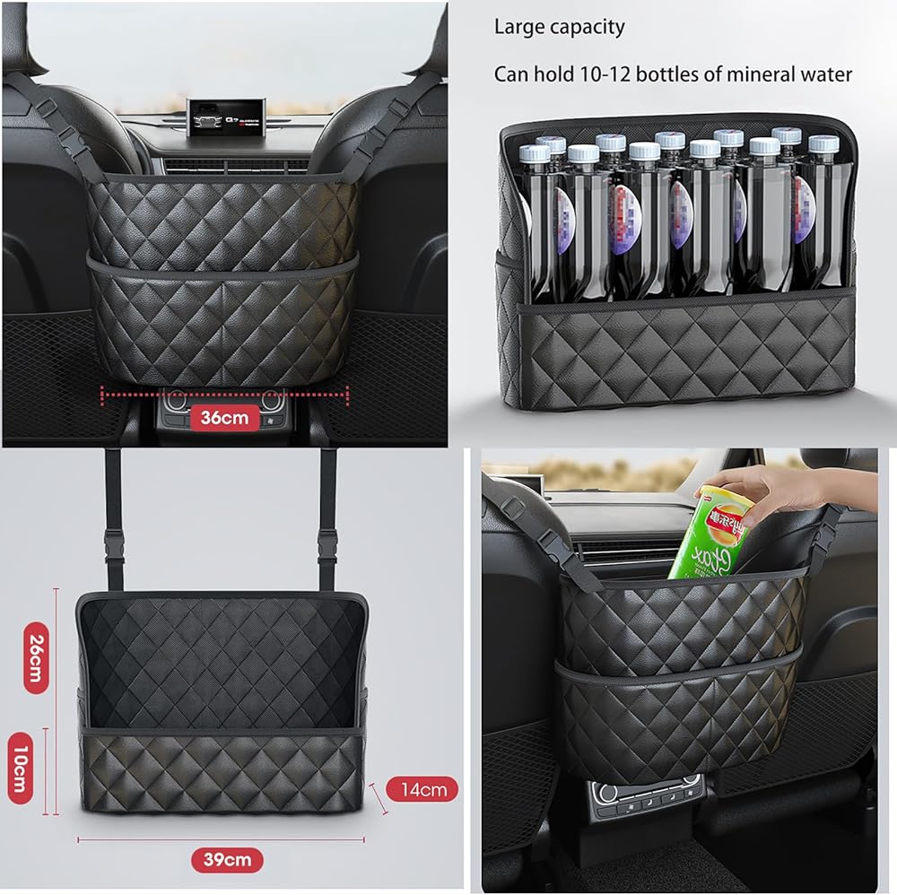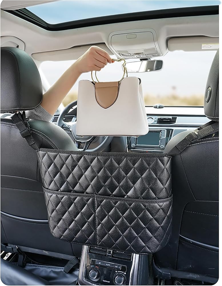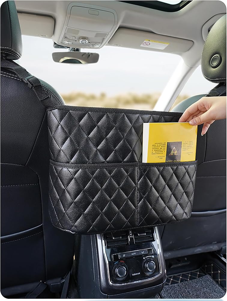 Extra Space and Storage: This car purse holder covers the gap between the front two seats and make them your extra storage. The large-capacity leather bag helps to store your tablet/wallet/magazine/snacks and other items, so that your car becomes just organized.