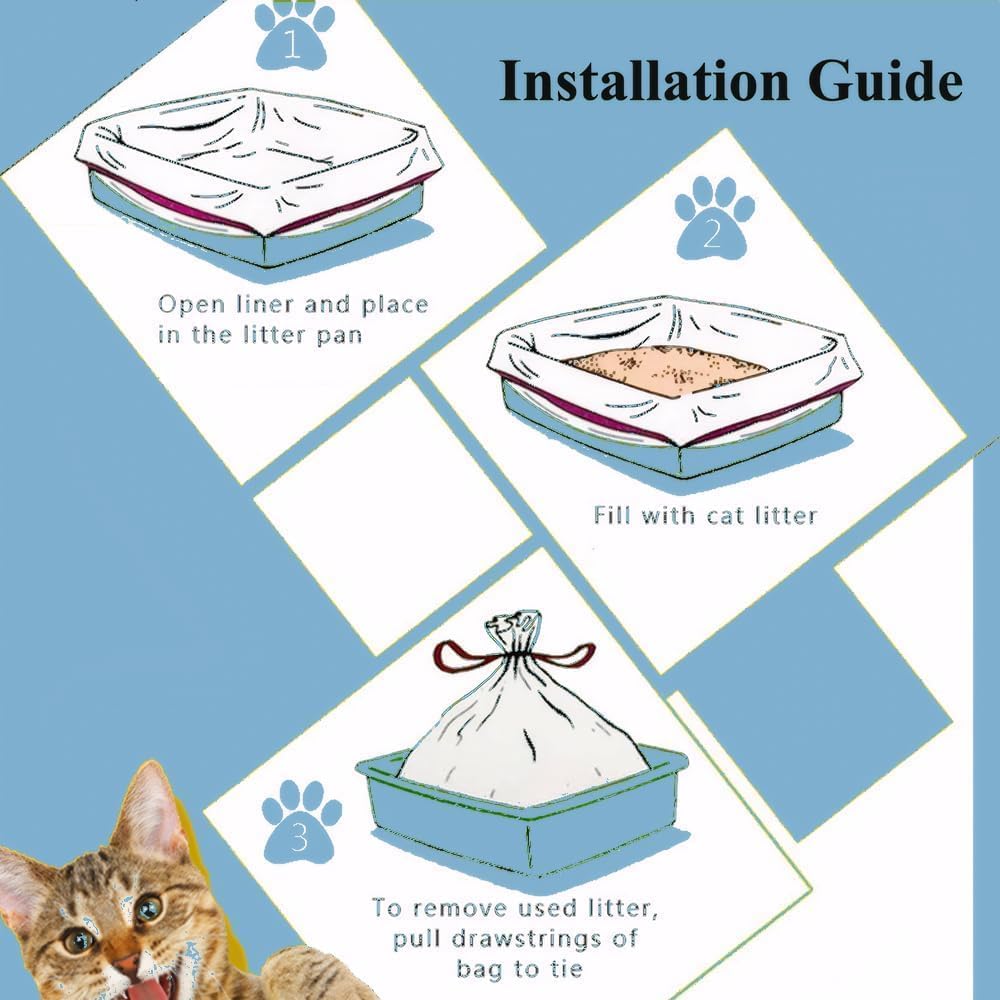 تصميم إغلاق بالرسم - بطانات صندوق القطط هذه مصنوعة بتصميم برباط، مما يجعلها سهلة التنظيف ومريحة للغاية، وتمنع تعرض الفضلات وتدفق الرائحة. اسحب الأربطة على كلا جانبي بطانة صندوق القطط وقم بتأمين المحتوى عن طريق ربط الخيوط معًا، دون انسكاب أو كسر أو فوضى. وفر وقت التنظيف، فهو مثالي للعائلة المزدحمة لمحبي القطط، ولن تقلق بشأن اتساخ يديك أثناء العملية!