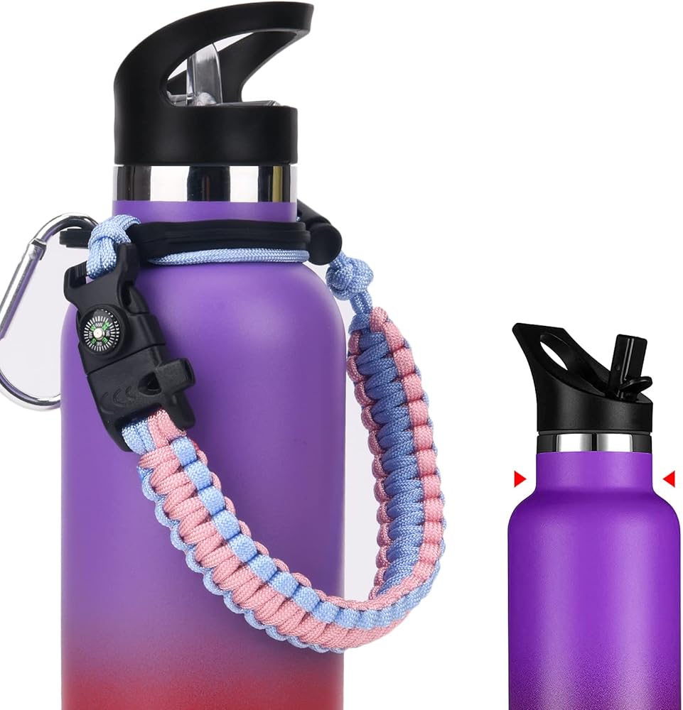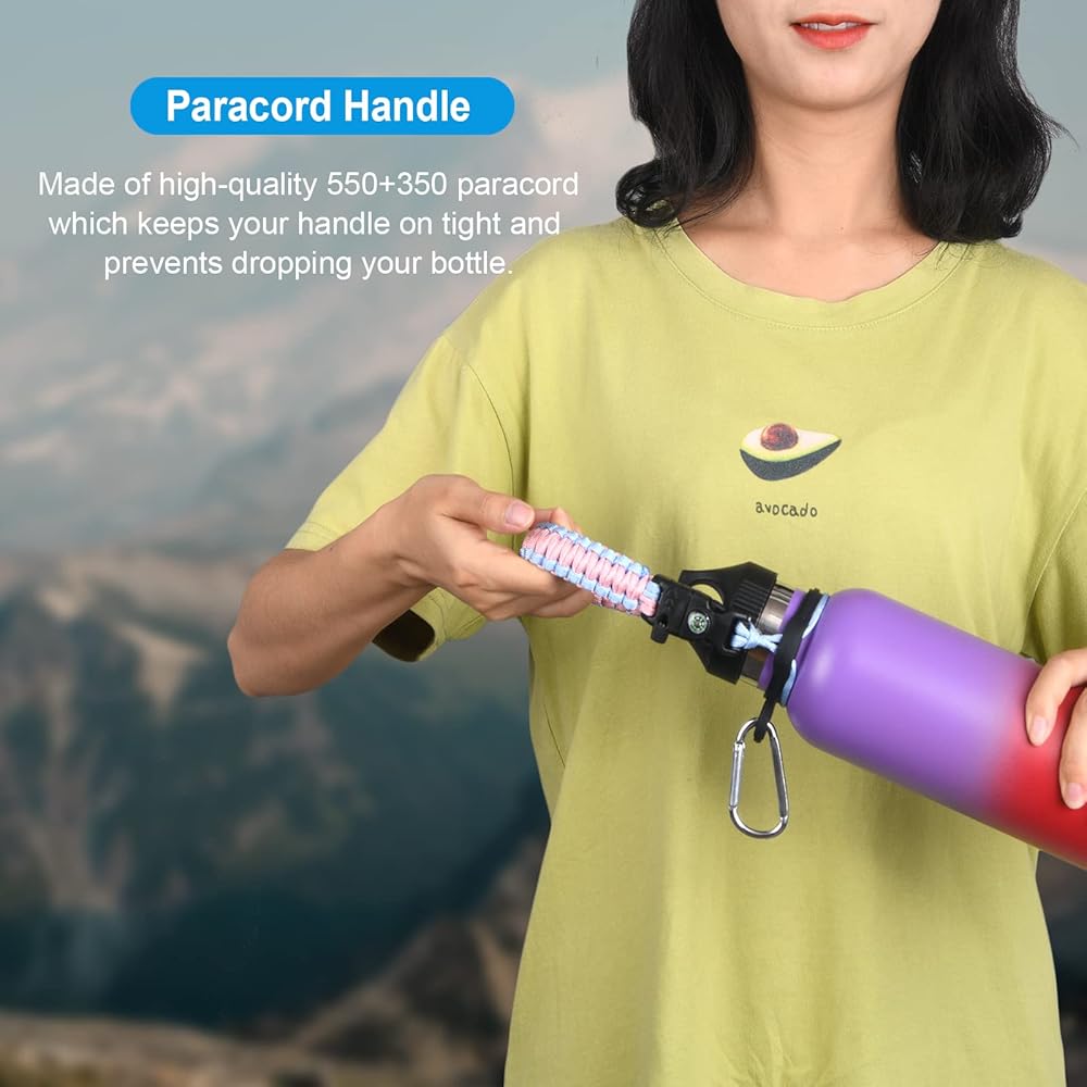 مقبض باراكورد لزجاجة المياه متوافق مع زجاجات المياه Hydro Flask STANDARD MOUTH (12 أونصة، 18 أونصة، 21 أونصة، 24 أونصة). مثالية للمشي لمسافات طويلة والتخييم وجلسات اليوغا والترفيه في الهواء الطلق.