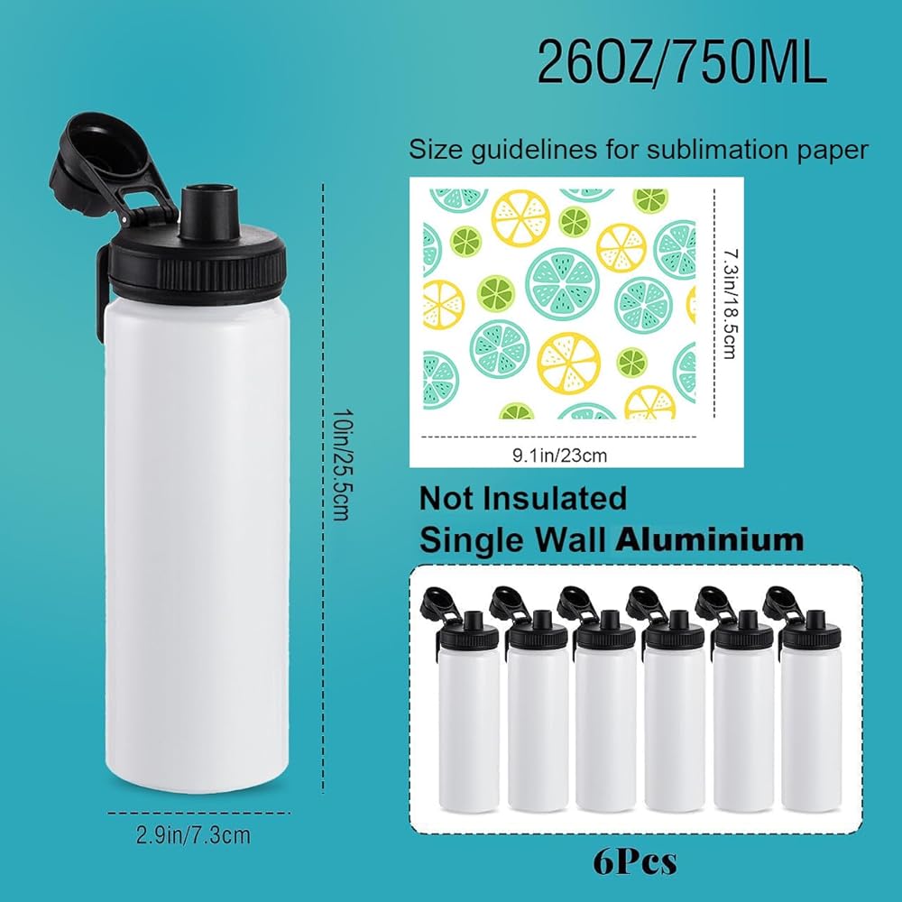 26oz Sublimation Water Bottles Bulk, 6Pcs