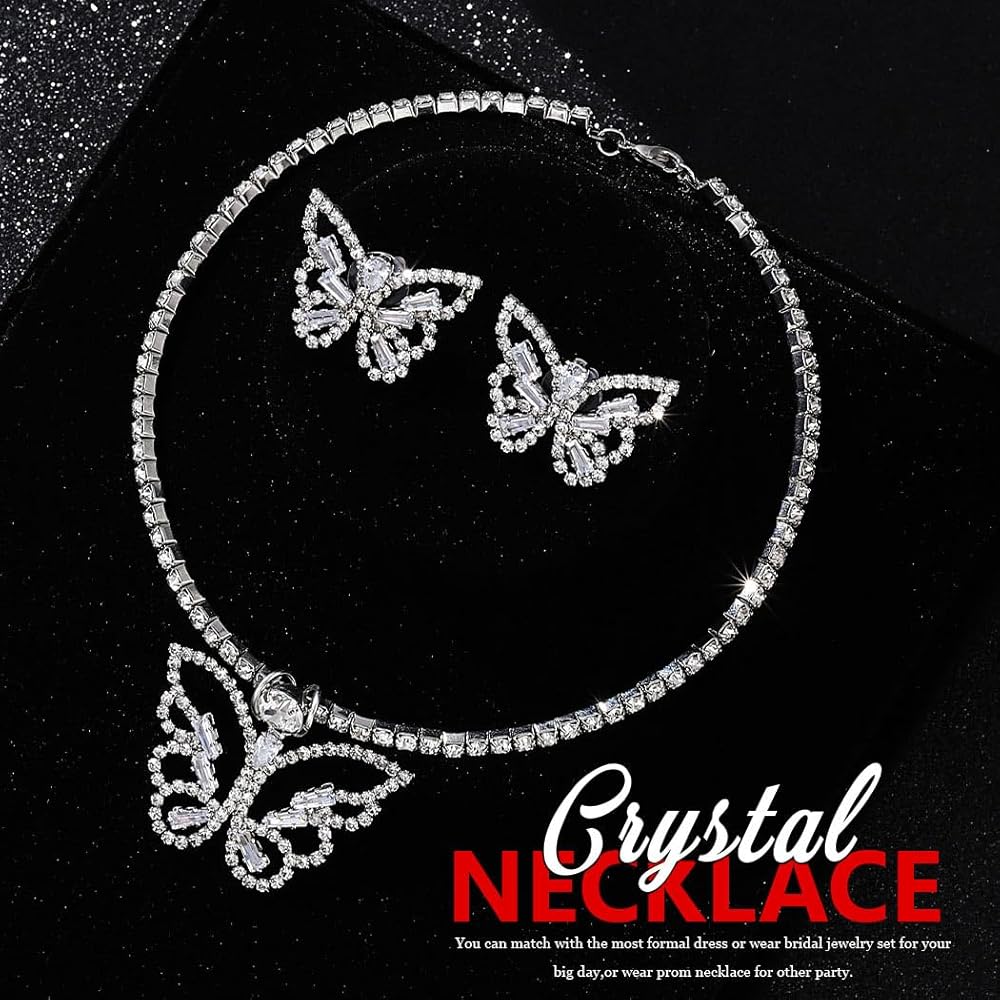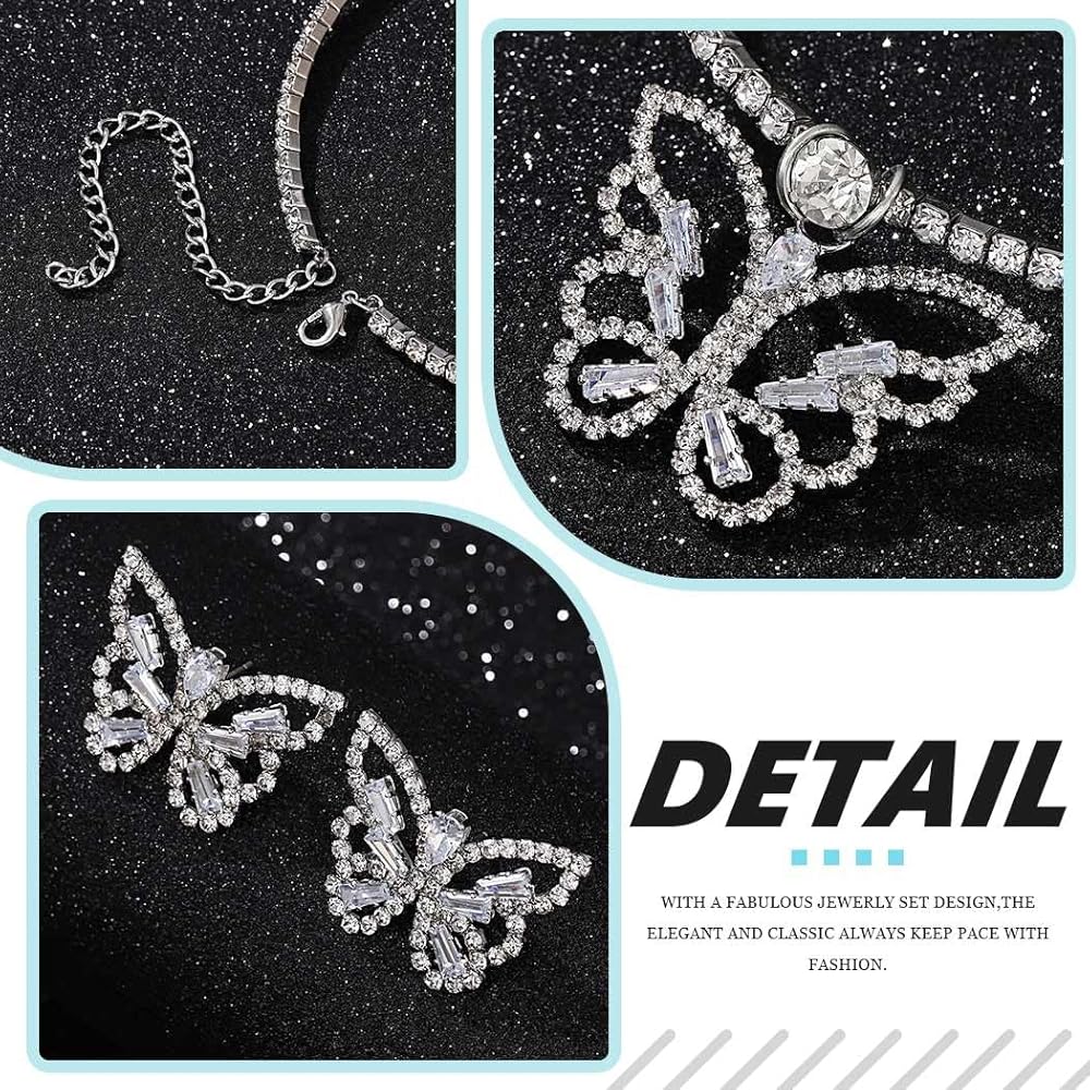تتضمن مجموعة مجوهرات حجر الراين قطعة واحدة من قلادة قلادة على شكل فراشة من حجر الراين وزوج من الأقراط المتدلية على شكل فراشة. مع تصميم كلاسيكي وأنيق، يمكن لهذه المجموعة من مجوهرات الزفاف الفضية أن تكمل جمالك تمامًا وتجلب لك تجربة ارتداء فريدة من نوعها.