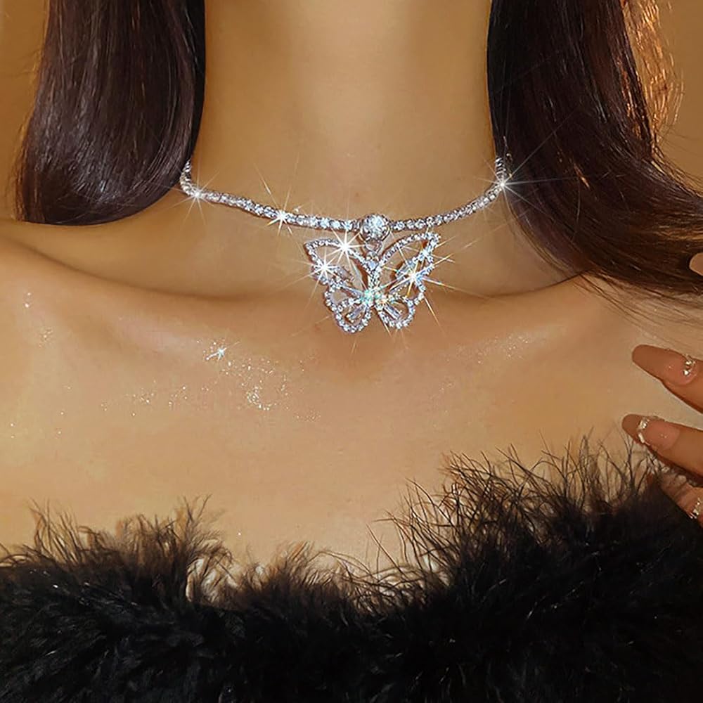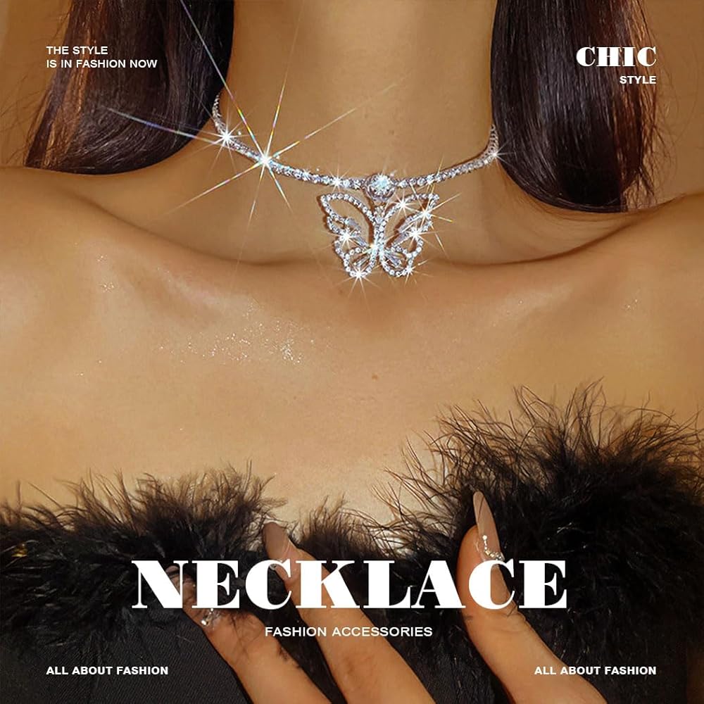 قلادة على شكل فراشة مصنوعة من سبائك وأحجار الراين عالية الجودة. يتم تطبيق تكنولوجيا مرصعة بالألماس وطلاء عالي الجودة لحماية البيئة لضمان بقاء أحجار الراين لامعة لفترة طويلة.