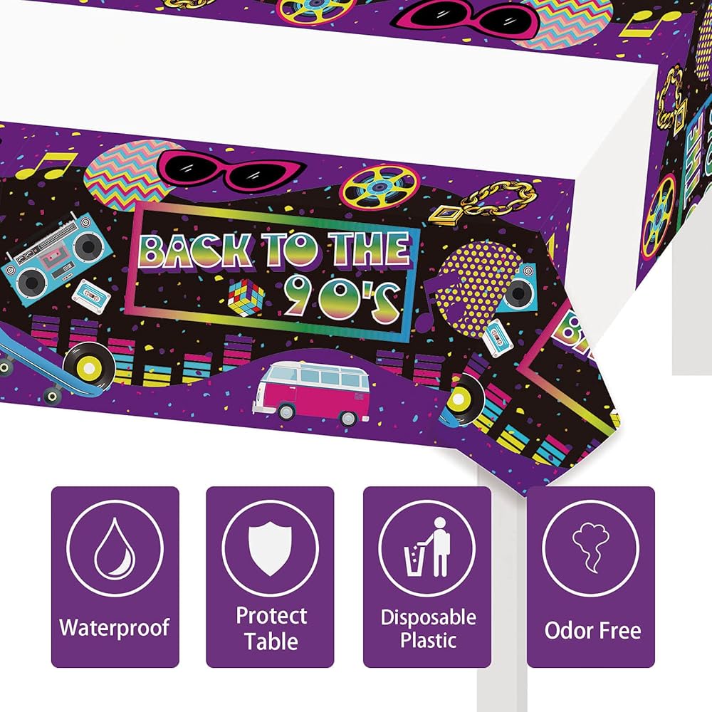 Letromp 4 قطع العودة إلى مفرش المائدة 90s ريترو راديو 90s أغطية طاولات الحفلات إرتداد 90/مضحك 1990/أنا أحب 90s/موسيقى الروك الشرير الرقص ديسكو الهيب هوب عيد ميلاد لوازم حفلات الزفاف الديكور