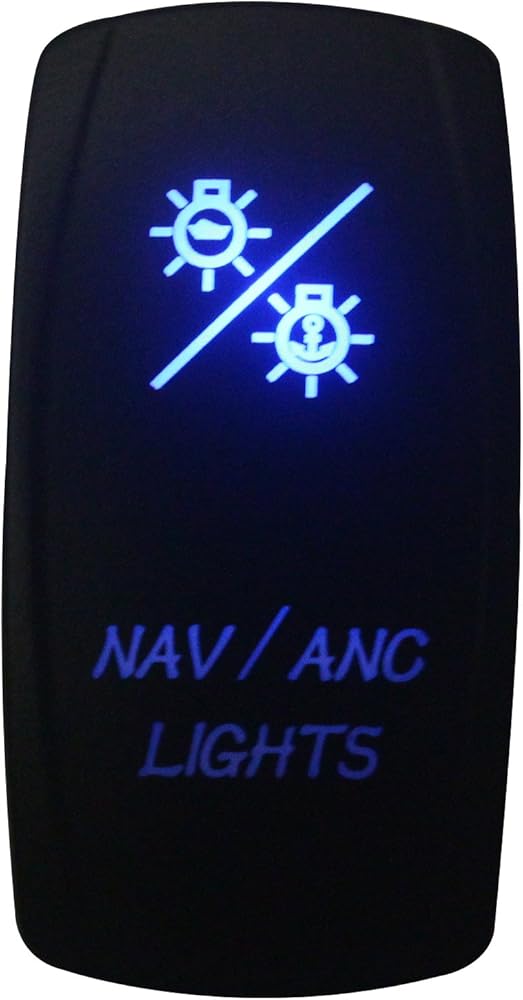 Same size as the ARB/Carling/NARVA switches.(it has a face surface size of 48.45mm x 25.80mm and uses a standard din size mounting hole of 37.2 mm x 21.2 mm.Please check the size before you bid.) The switch cover is designed to be streamline curved. The image and letters are laser etched. Waterproof IP 66,Rated at 20amp/12v and 10amp/24v.Double Pole Double Throw ON-OFF-ON switch,with black hard surface rocker. ABS & Environmental anti-retardant materials.Short circuit protection, overload protection, against polarity reversal protection,safety to use. Lower light is on when you press the switch DOWN.Upper light is ON when the switch is pressed UP.The switch is off when you press the switch on MIDDLE position.Dual LED lights in BLUE.(two premium LEDs emits cozy beam, you can see it clearly in the dark.) Suitable for all 12v/24v car battery installation, such as cars, motorcycles, buses, RVs, boats, trailers,Marine,Yacht,RV,ATV,UTV, etc