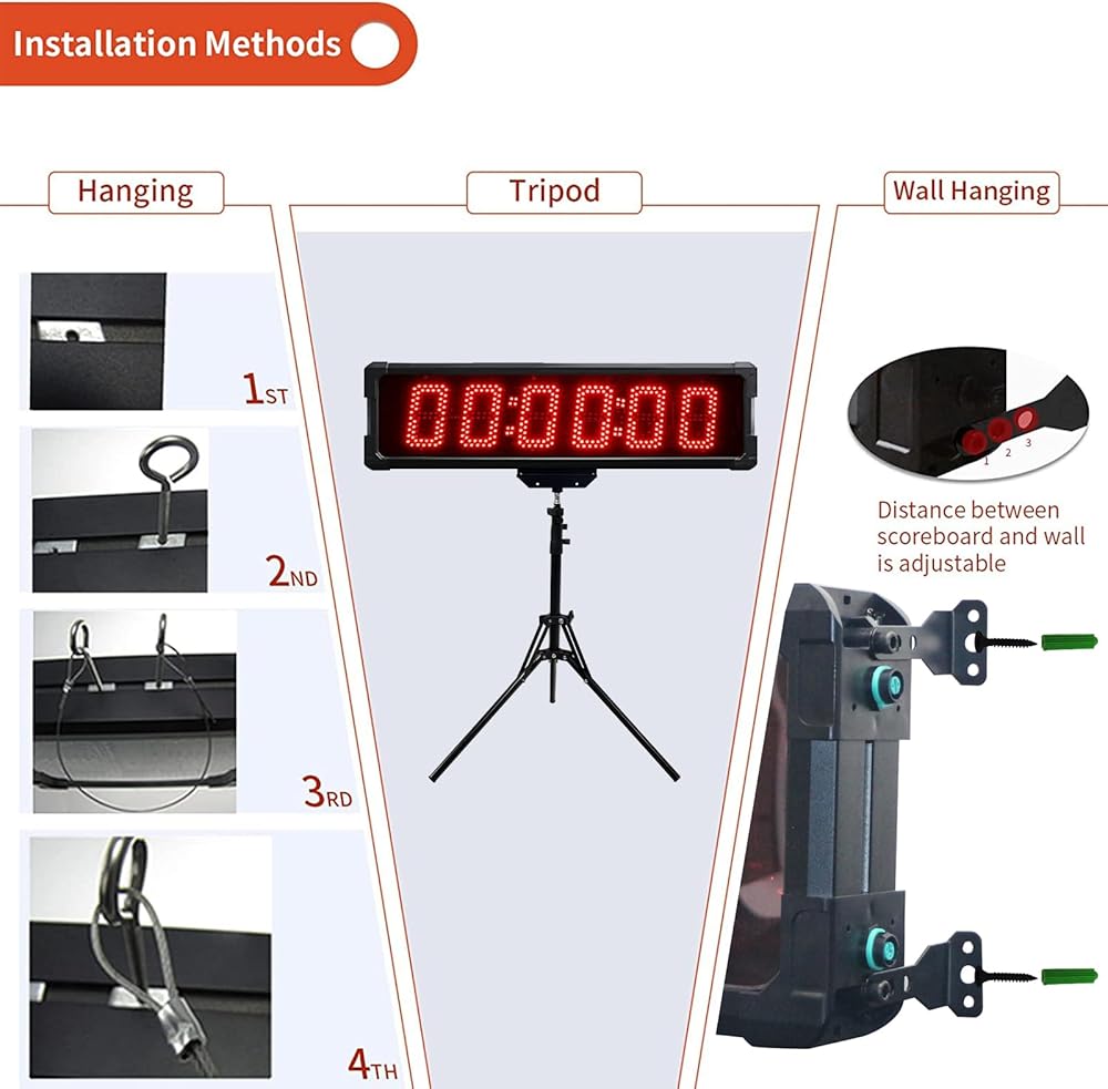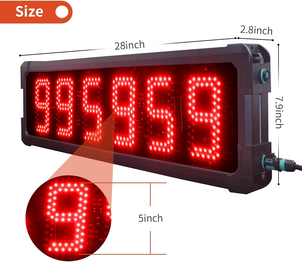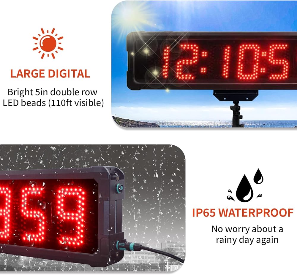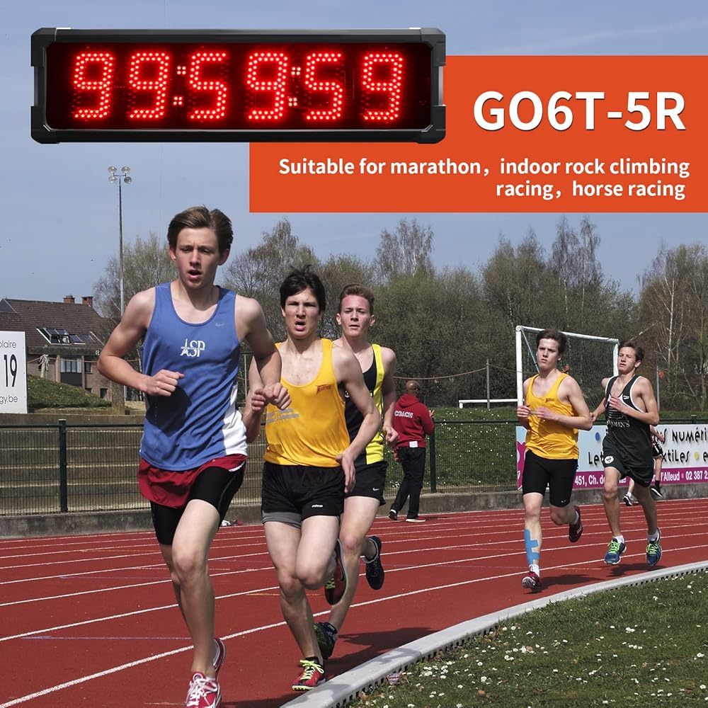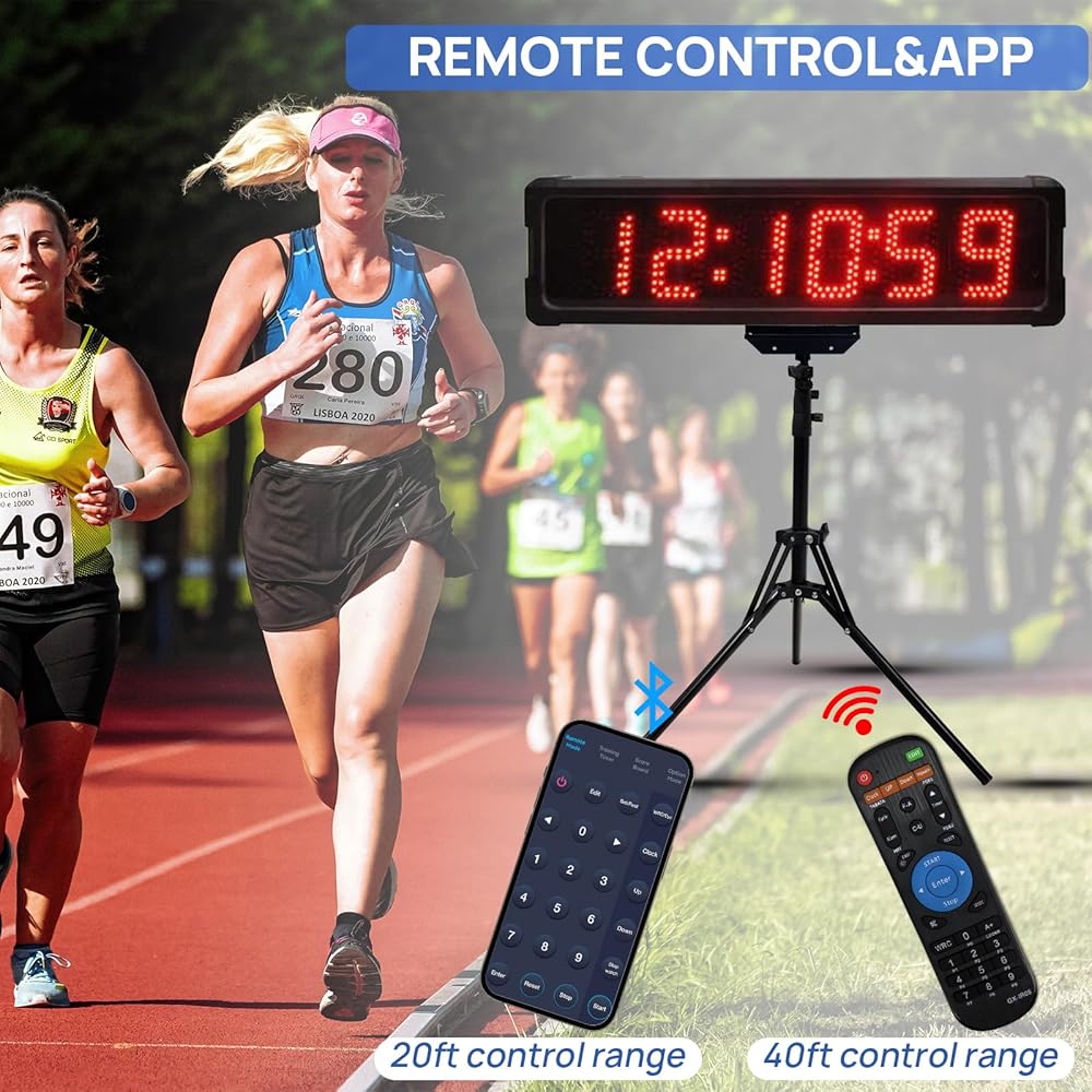 GANXIN في الهواء الطلق Waterpoof LED سباق توقيت السباق ماراثون سباق الموقت، 5 بوصة 6 أرقام ساعة العد التنازلي مع حامل ترايبود، أسفل / العد لأعلى، ساعة توقيت مع جهاز التحكم عن بعد