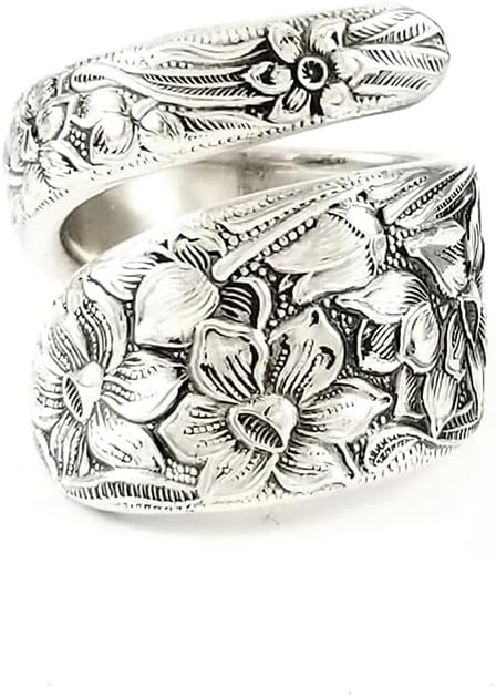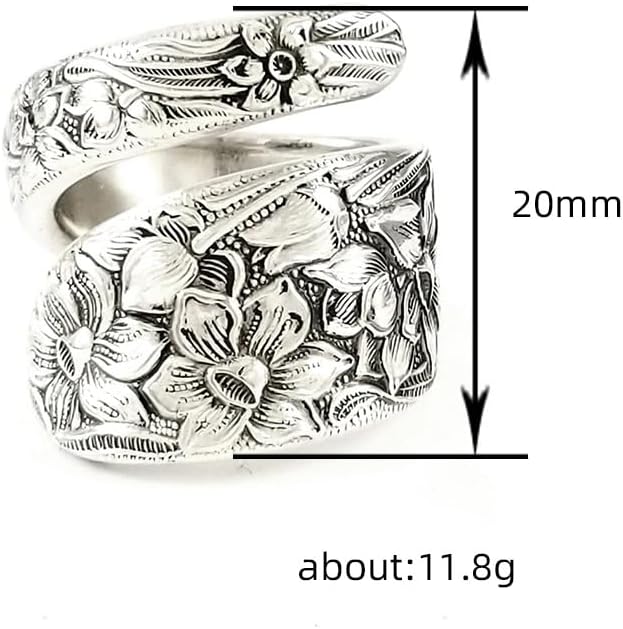 FLYYQMIAO 925 الفضة الاسترليني خمر الزهور الفريدة ملعقة خواتم للنساء واسعة السبابة بيان بوهو لف الدائري الفيكتوري زهرة الزنبق العصابات للفتيات الرجال الرجعية الراحة خواتم الهدايا (9)