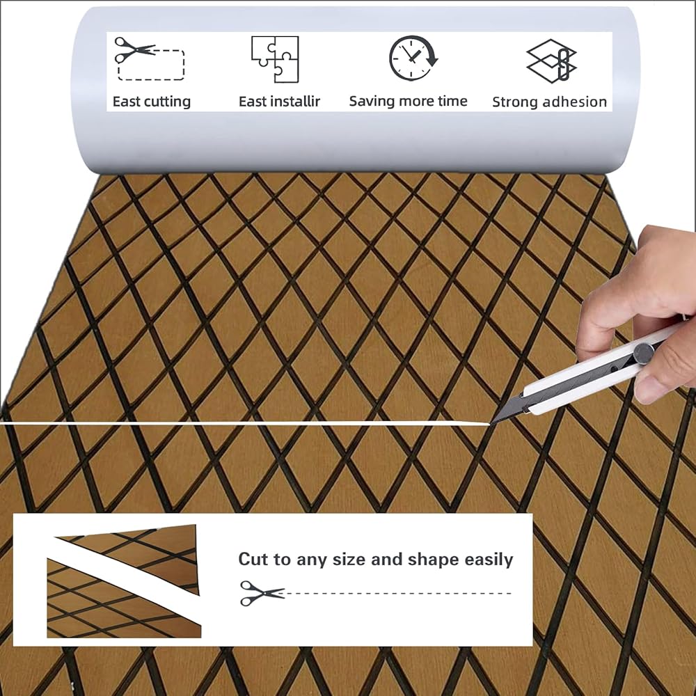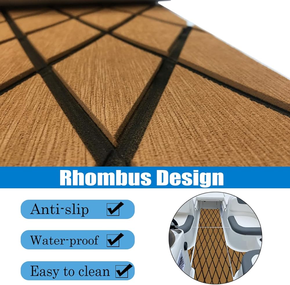 【 تطبيقات واسعة 】إذا كنت مالك قارب، فيجب أن يكون لديك مكان لسجاد التزيين من أسيتات إيثيلين-فاينيل (EVA). بما في ذلك منصات السباحة لليخوت البحرية، وقمرة القيادة، والسطح الخلفي، والأقواس، والخطوات، ومنصات محطة هيلم، ومنصات Poling، والمقطورة والعائمة.