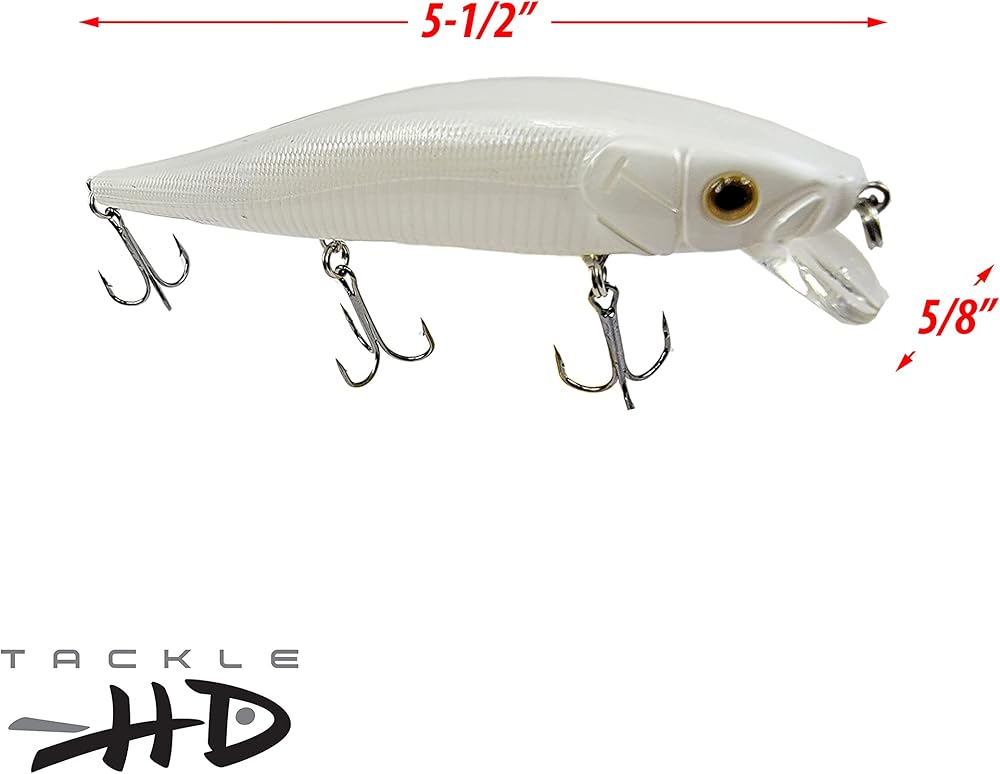 Tackle HD 2-Pack Fiddle-Styx Magnum Jerkbait، 5 1/2 بوصة × 5/8 بوصة طعوم رعشة معلقة، طُعم صيد المياه العذبة أو المياه المالحة، سمك السلمون المرقط، الكرابي، العين رمادية فاتحة اللون، أو طعم باس، لؤلؤ فرنسي