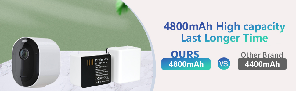 مواصفات البطارية: نوع البطارية: ليثيوم أيون السعة: 4800 مللي أمبير/18.48 وات/3.85 فولت؛ بطاريات الخلايا عالية السعة والجودة تجعل كاميرا Arlo Pro 3 وPro 4 وPro 5S 2K وArlo Ultra وUltra 2 تعمل لفترة أطول، فلا داعي للقلق بشأن أمان المنزل.
