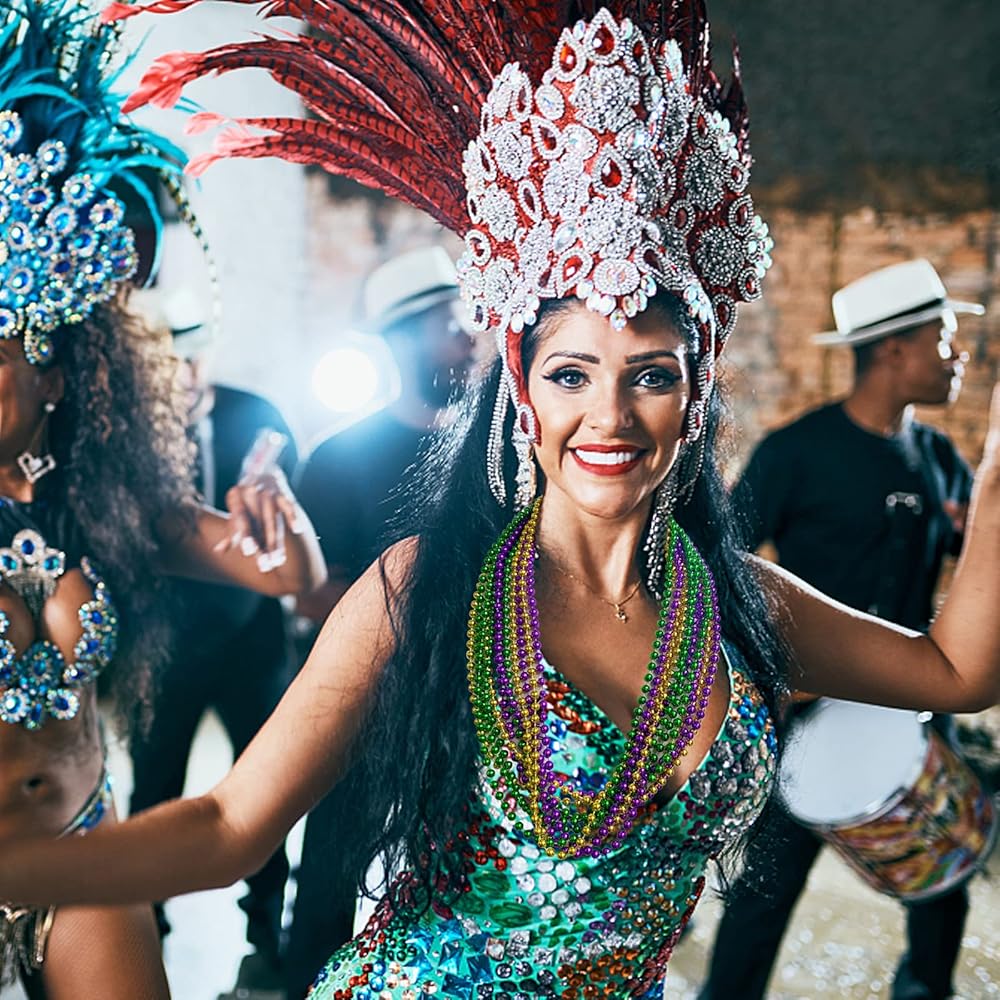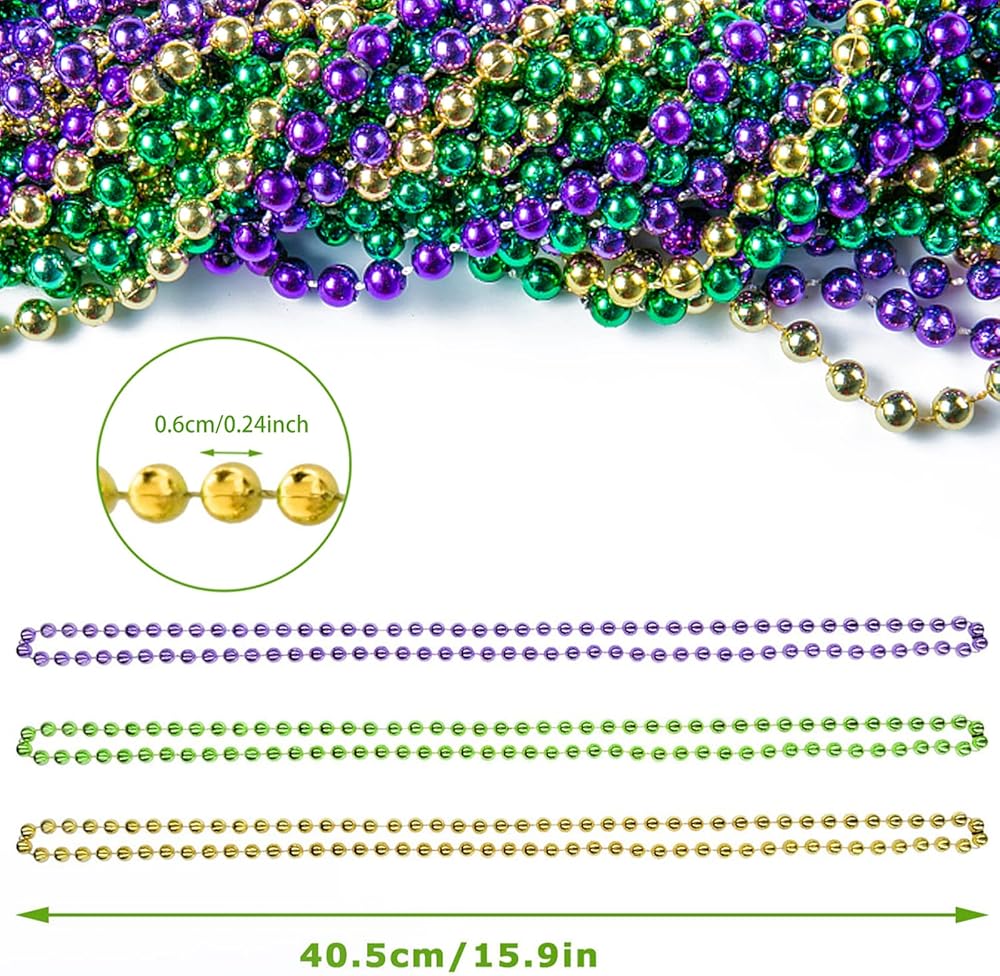 🎈[الحجم المناسب] محيط الخرز حوالي 80 سم / 31 بوصة. مقاس واحد يناسب معظم الأشخاص ومريح في الارتداء. يمكنك اختيار المعلقات ذات الأنماط المختلفة لإضافة إحساس بالرقي إلى القلادة، وهي مناسبة جدًا لكرنفال نيو أورليانز!