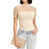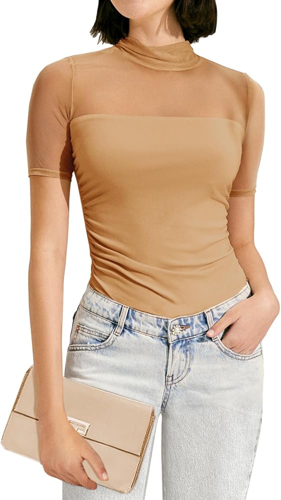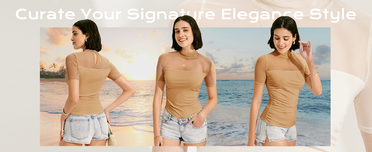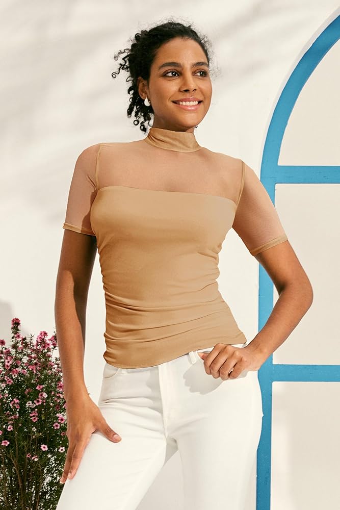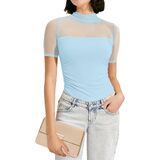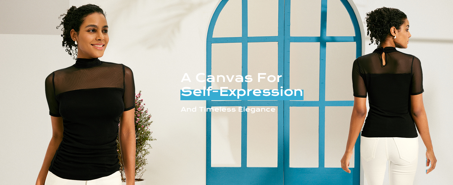 【مثير وأنيق】تتميز هذه القمصان العصرية بأكمام شبكية شفافة وتصميم خصر جذاب، وتُظهر كتفيك وخط خصرك بشكل مثالي. تضفي ياقة الرقبة الوهمية والأزرار اللؤلؤية لمسة من الرقي، مما يجعلها مثيرة ولكن أنيقة.