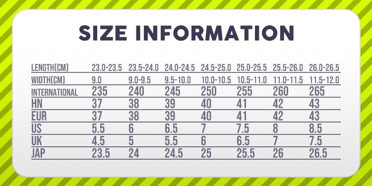 الحجم: الحجم الآسيوي. يرجى اتباع جدول المقاسات الخاص بنا في القائمة. إذا كان لديك أي ارتباك أو لم تكن متأكدًا من المقاس، فسنوصي بالمقاس المناسب لك. الأحذية S=الاتحاد الأوروبي 36-37؛ الأحذية L=الاتحاد الأوروبي 38-39.