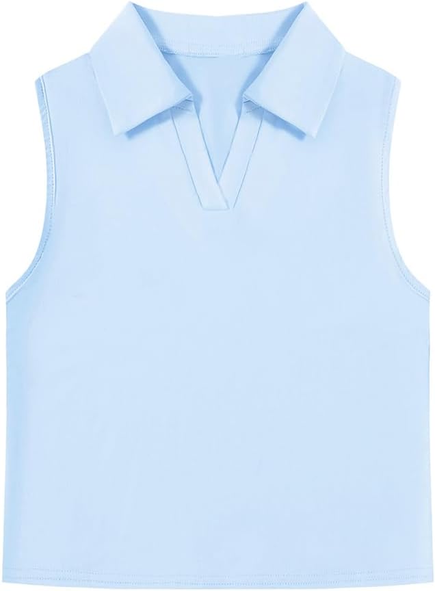 Features: Sleeveless girls Polo Shirt design with a v-neck collar,shirts has a side-slit hem, easy to take off and for girls to move and play, casual basic style Athletic skorts/skirts feature built-in shorts that are designed with breathable holes, The outer skirt provides easy movement, while the built-in interior short is comfortable and convenient.