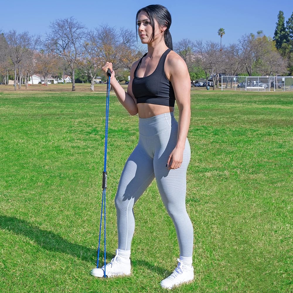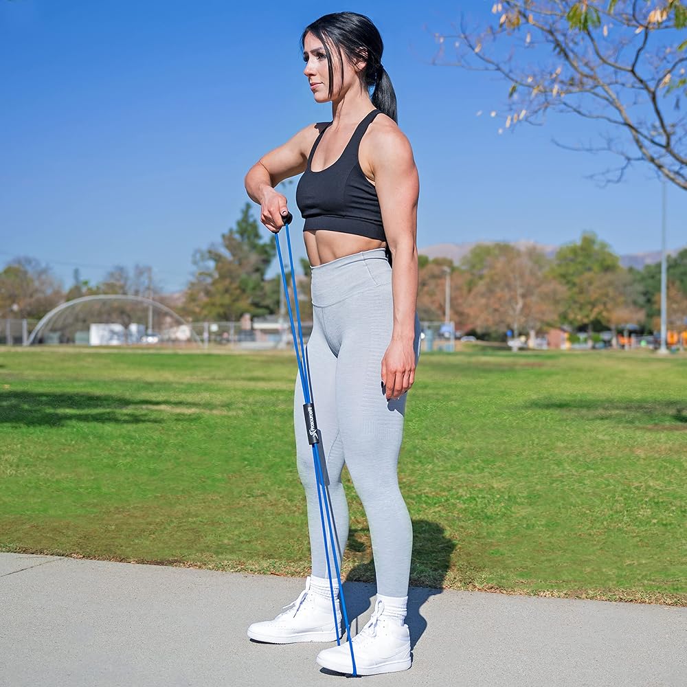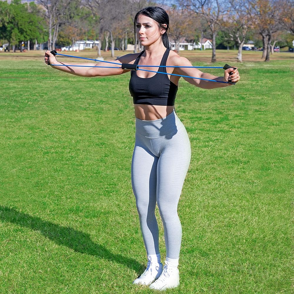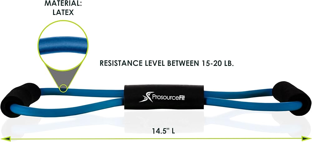 The ProsourceFit Toner Resistance Band is an easy-to-use fitness accessory for working out your upper and lower body. The figure 8 design has two loops to make exercises like chest flys, leg lifts, and back rows easier. It's perfect for two-arm exercises, and can also be wrapped over a sturdy object to work one side at a time, or to stretch out your arms, back and shoulders. The shape means you don't have to worry about looping or tying a long resistance band to shorten it. Made with strong and durable latex tubing, it resists breaking with normal use, and is great for shorter-range exercises that build strength and tone muscles. It provides between 15-20 pounds of resistance, making it ideal for both intermediate and advanced users. Perfect for tricep extensions, bicep curls, one-arm rows, chest presses, shoulder raises and more. The lightweight, compact size is travel-friendly, making it convenient for workouts anywhere, anytime!