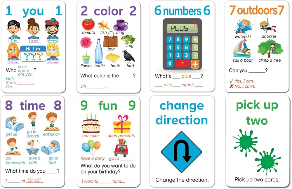 • تصميم مناسب للفصل الدراسي والمنزل - من خلال الأسئلة والمحتوى العملي والمصنف بعناية والصور والتخطيطات البديهية، توفر لعبة البطاقات هذه طريقة فعالة وممتعة للطلاب لتعلم اللغة الإنجليزية في الفصل الدراسي وفي المنزل. يتعلم الطلاب بشكل طبيعي من خلال اللعب الهياكل النحوية المختلفة التي تشكل اللغة الإنجليزية، وهي تكمل أي كتاب دراسي تقريبًا بشكل جيد، نظرًا لأن أوراق اللعب تظهر بترتيب عشوائي، فإن البطاقات رائعة للمراجعة، وكل لعبة مختلفة!
