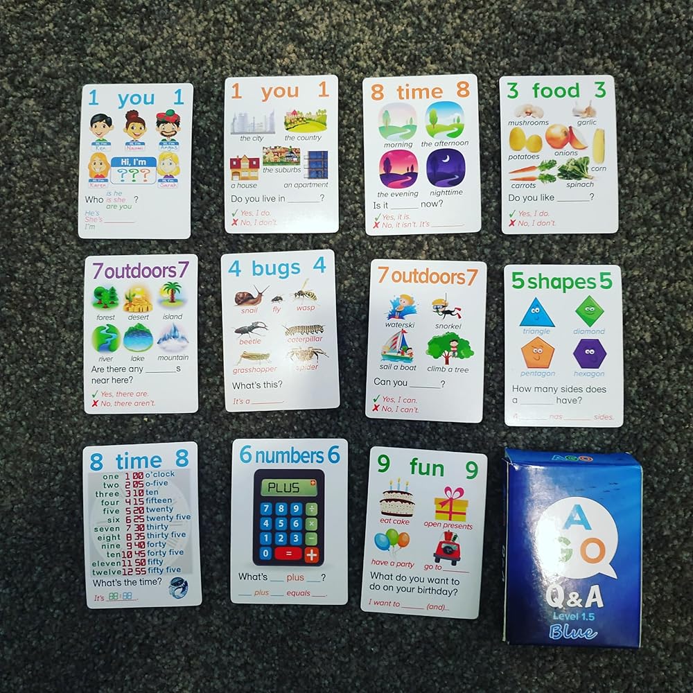 لعبة بطاقة AGO Q&A Blue ESL - المستوى 1.5. تعلم ممتع للغة الإنجليزية لطلاب EFL/ESL - قم ببناء المفردات والقواعد ومهارات المحادثة!
