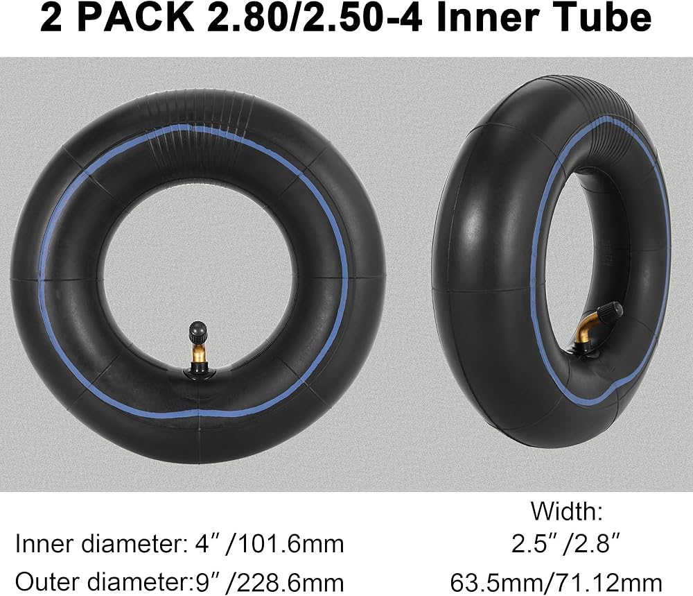 • This 2.80/2.50-4 Inner tube can replace 2.50-4 2.80-4 3.0-4 inner tubes. Works with many hand trucks, dollies, lawn mowers, wheelbarrows, and scooters which uses 4 inch rims and 8.5 9.0 inch wheels.
