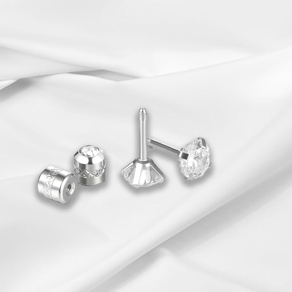 • 【أقراط خلفية لولبية】: زركونيا مكعب 6 مم. طول مسمار الرأس المزدوج: 6 مم، 20 جم (مواصفات 0.8 مم).