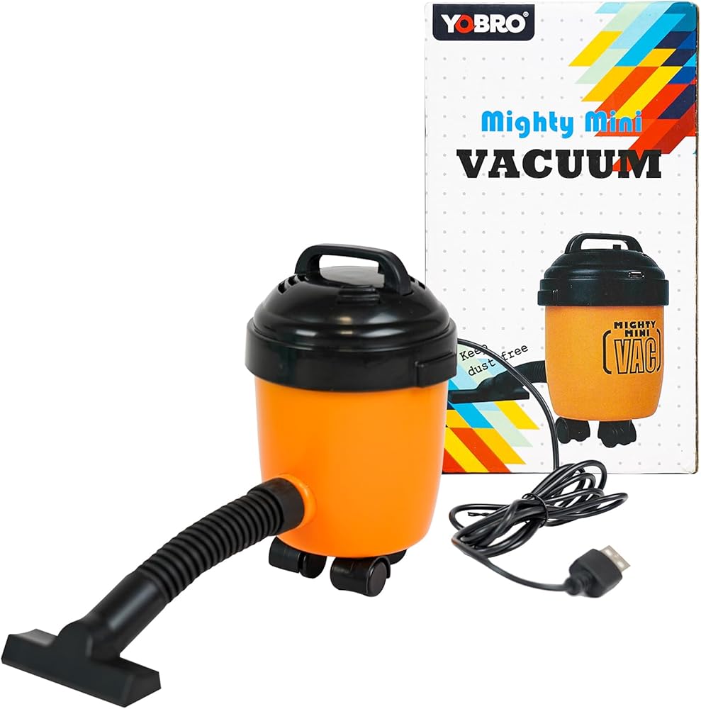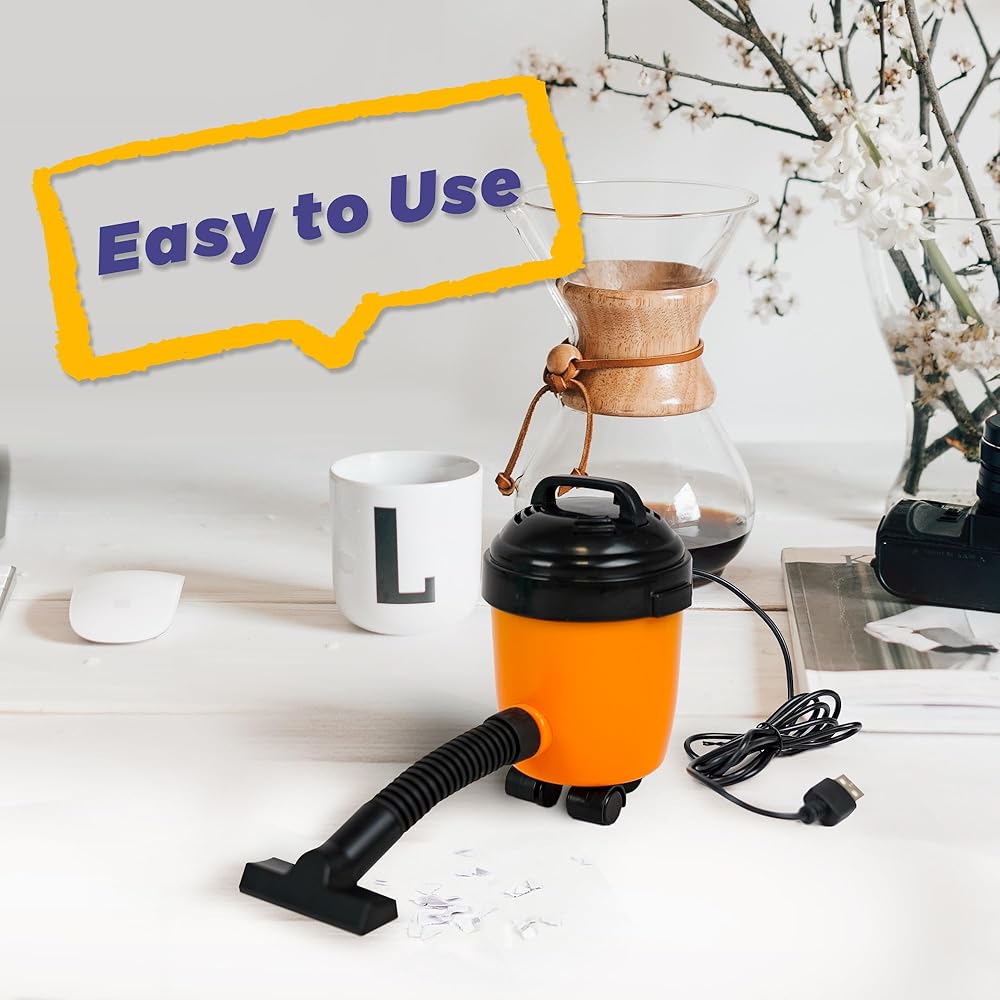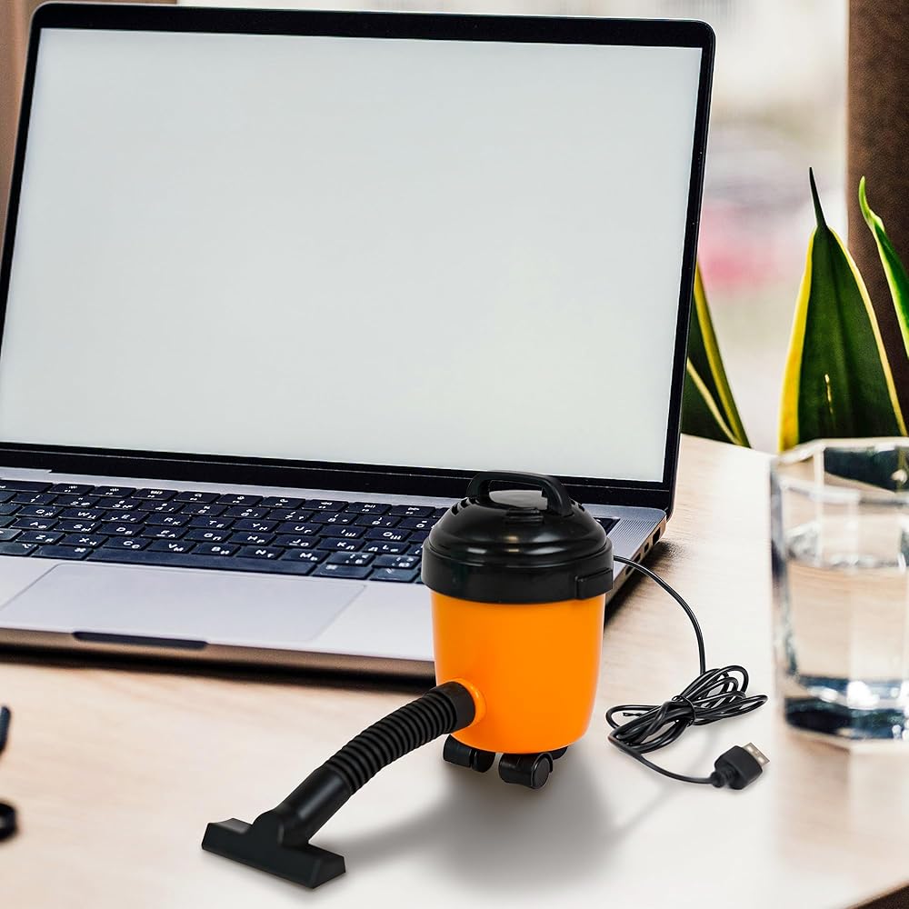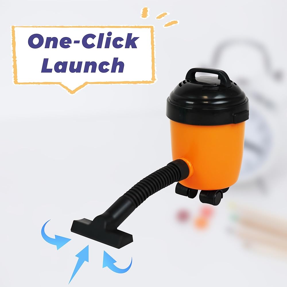 مع شكل المكنسة الكهربائية الأسطوانية الصغيرة باللون البرتقالي والأصفر، هذه ليست مجرد لعبة، ولكنها أيضًا شريك قوي لتنظيف سطح المكتب.