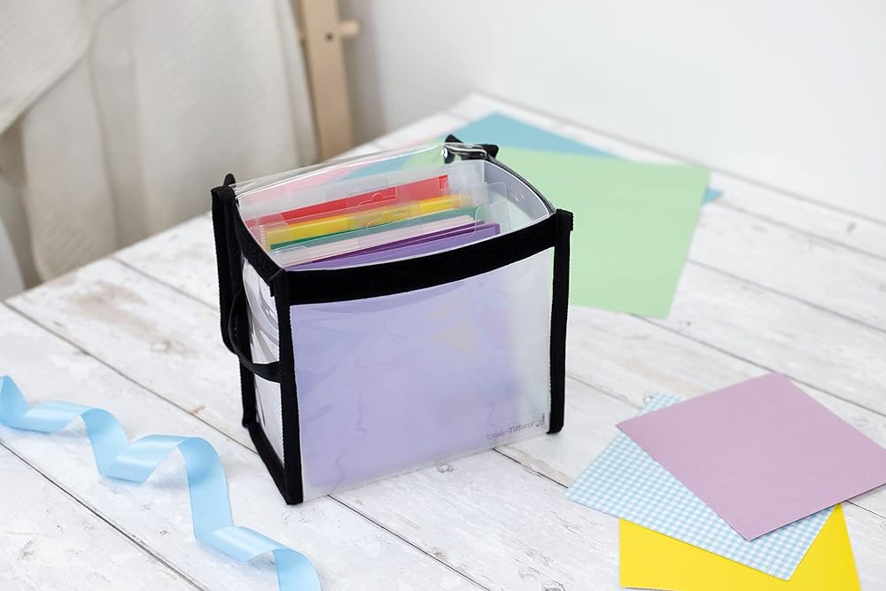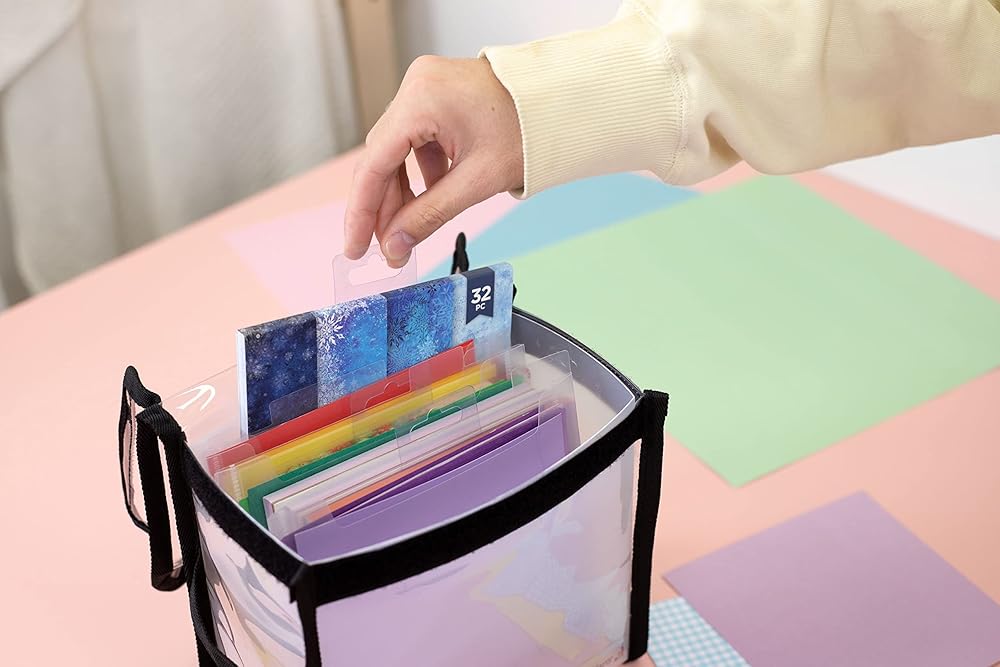 The Fayleen Buddy Bag is perfect for 6"x6' Papers and Cardstock. Add 6"x6" Tabbed Dividers to help organize your papers. Can hold up around 9-10 6"x6" paper pads.