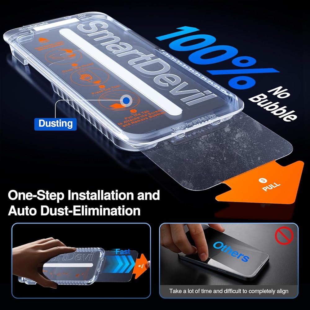 【فقط قم بالتغطية والسحب】 تركيب ثوري سريع وسهل باستخدام مجموعة محاذاة SmartDevil. تقنية تحديد المواقع التلقائية المبتكرة، وإزالة الغبار، والامتصاص، مما يجعل التثبيت سهلاً دون عناء في ثوانٍ. لا مزيد من القلق بشأن الفقاعات والغبار!