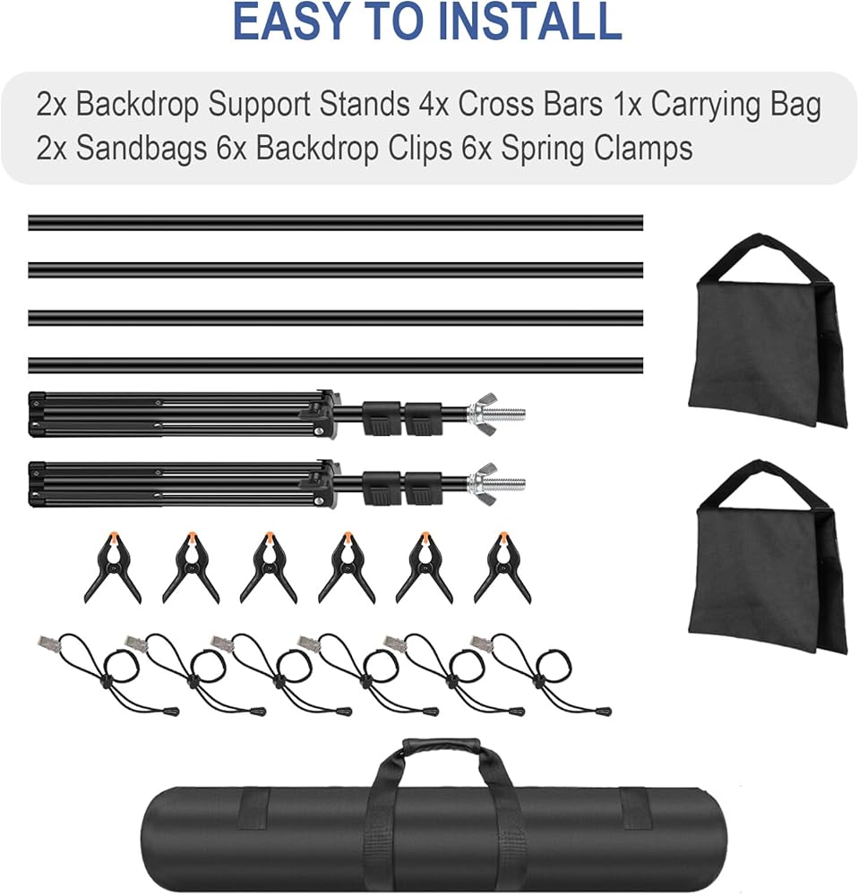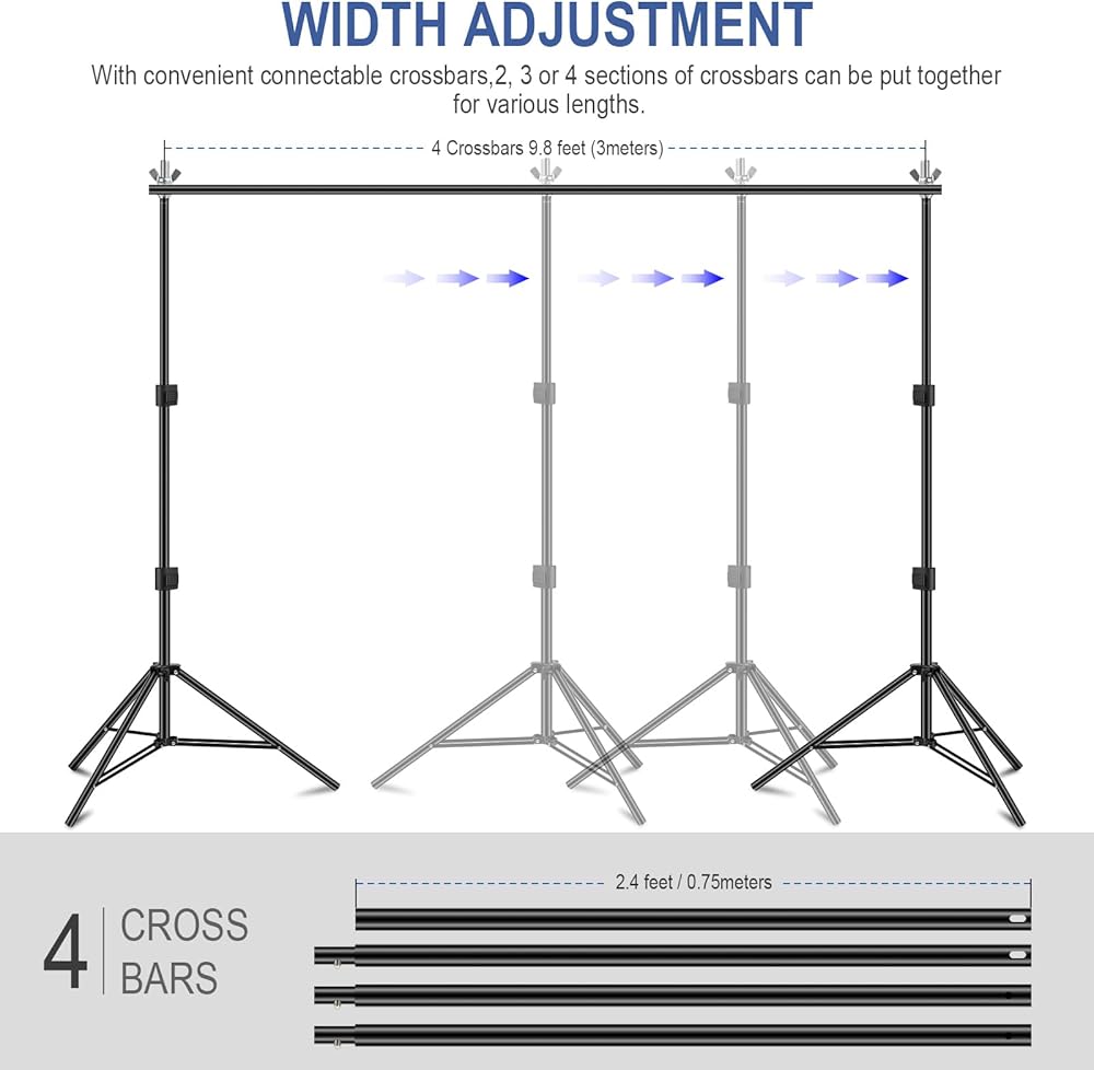 NEWKS Photo Studio Background Support Kit for muslin, green screen, canvas, or paper backdrops