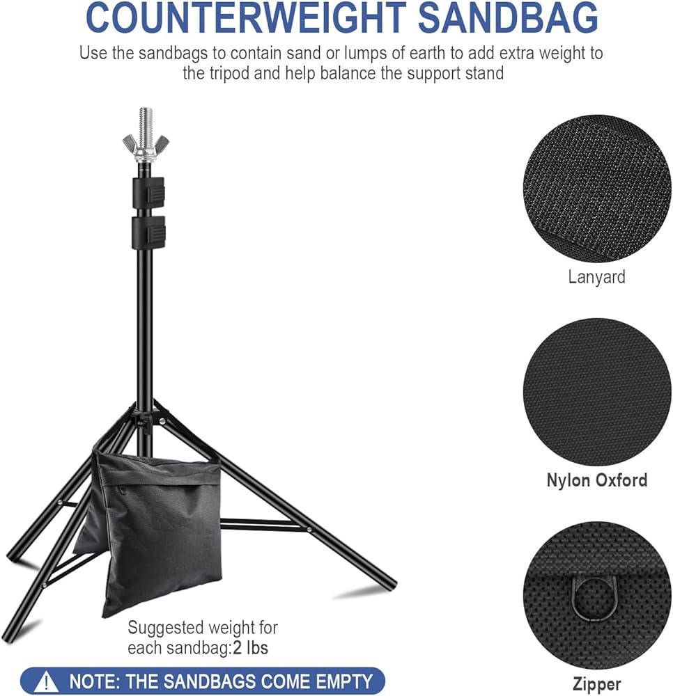 Durable Light Stand—— The stand is made of high-quality aluminum alloy, which is both durable and sturdy