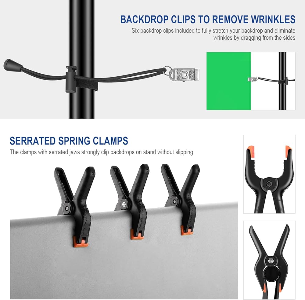 With flexible tips and ultra grip, the clamps can firmly fix the backdrop.
