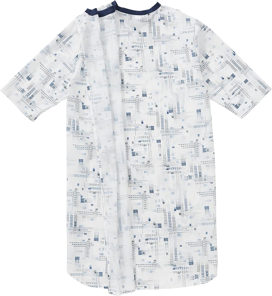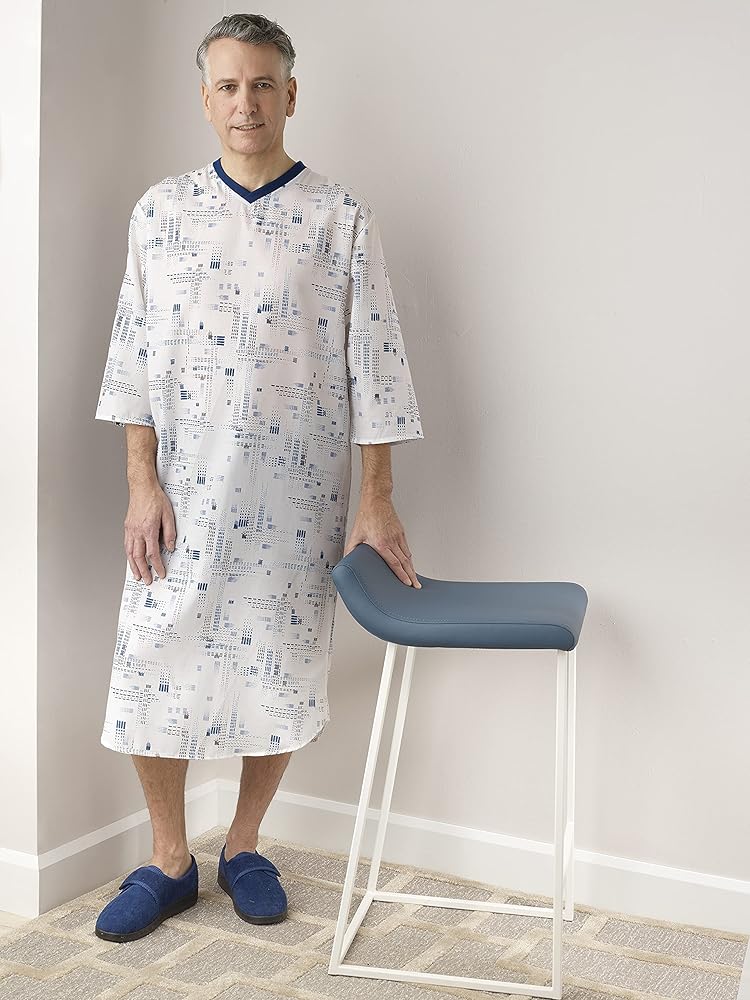 Introducing the Silverts Men's Adaptive Nightgown, the perfect blend of comfort, functionality, and style for elderly and disabled seniors. This thoughtfully designed open back cotton hospital sleepwear is ideal for men who require assistance with dressing and undressing, providing a dignified and practical solution for home care and medical settings. Crafted from premium, breathable cotton, this nightshirt ensures ultimate comfort, making it perfect for a restful night's sleep or lounging during the day. The soft, high-quality fabric feels gentle against the skin, reducing irritation and promoting overall well-being. Its durable construction ensures that it can withstand regular use and repeated washing, maintaining its softness and shape over time. The innovative open back design of this adaptive nightgown allows for effortless dressing and undressing, significantly reducing the need for strenuous movements. Caregivers will appreciate the ease with which they can assist their loved ones, making this nightgown an essential addition to home care clothing for elderly men. The discreet snap closures along the back ensure the nightshirt stays securely in place, offering both convenience and modesty. Our men's adaptive nightgown is not only functional but also stylish. The classic design features a relaxed fit and elegant detailing, making it a versatile piece that can be worn as a nightshirt or pajama top. Whether you're in a hospital, nursing home, or at home, this sleepwear provides the perfect combination of comfort and practicality. Silverts is committed to providing high-quality adaptive clothing that meets the unique needs of seniors. This nightgown is specifically designed to cater to the requirements of disabled seniors and those with limited mobility, ensuring they can dress with ease and dignity. It is also ideal for post-surgery recovery, offering a comfortable and accessible solution for men who need extra care.